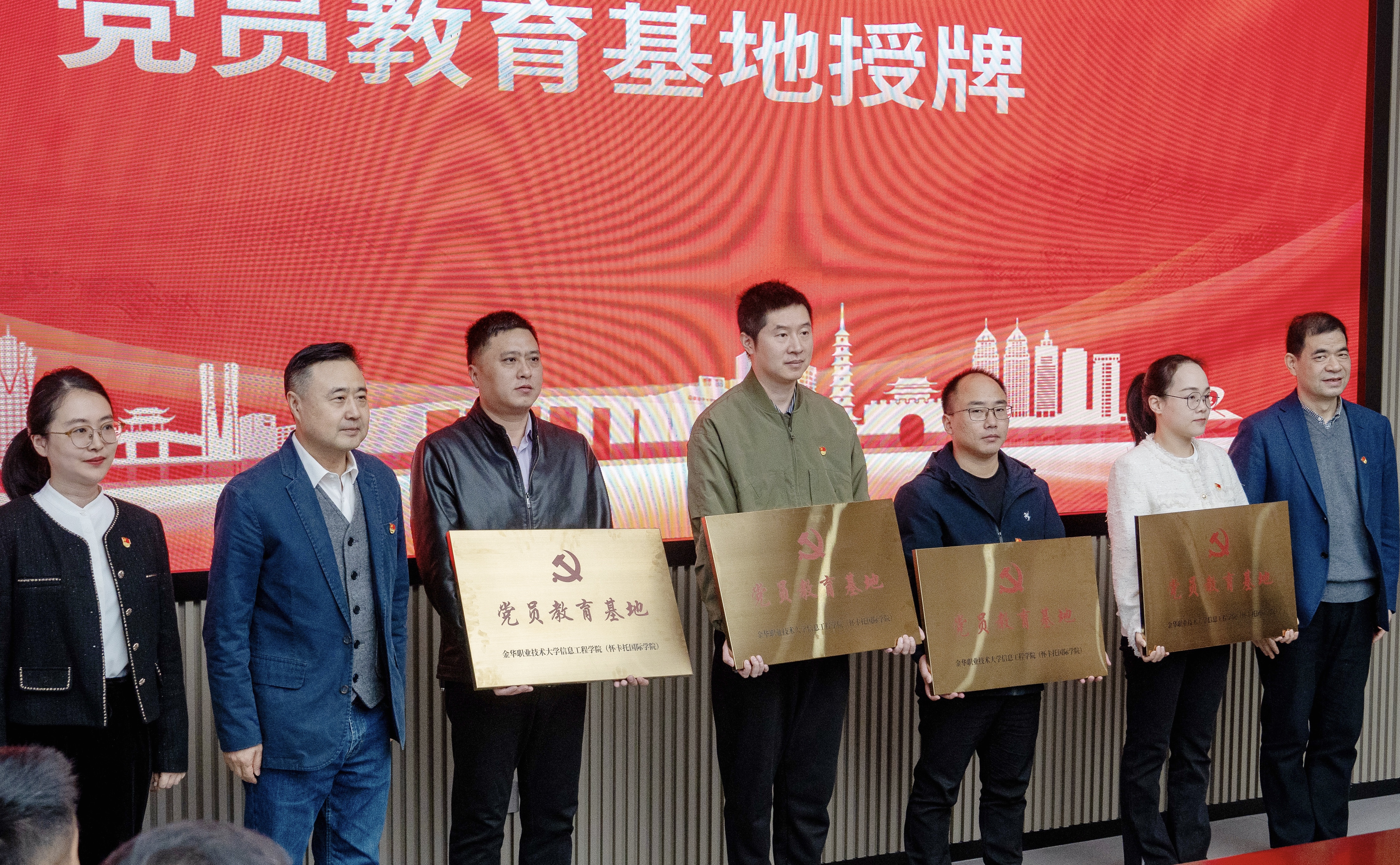 仪式上,董晓晨、组织部相关负责人和信息工程学院负责人共同为陈双田纪念馆、武义烈士纪念馆、安地镇蒋里村革命教育馆、浙江省第五监狱等首批4家党员教育基地授牌。