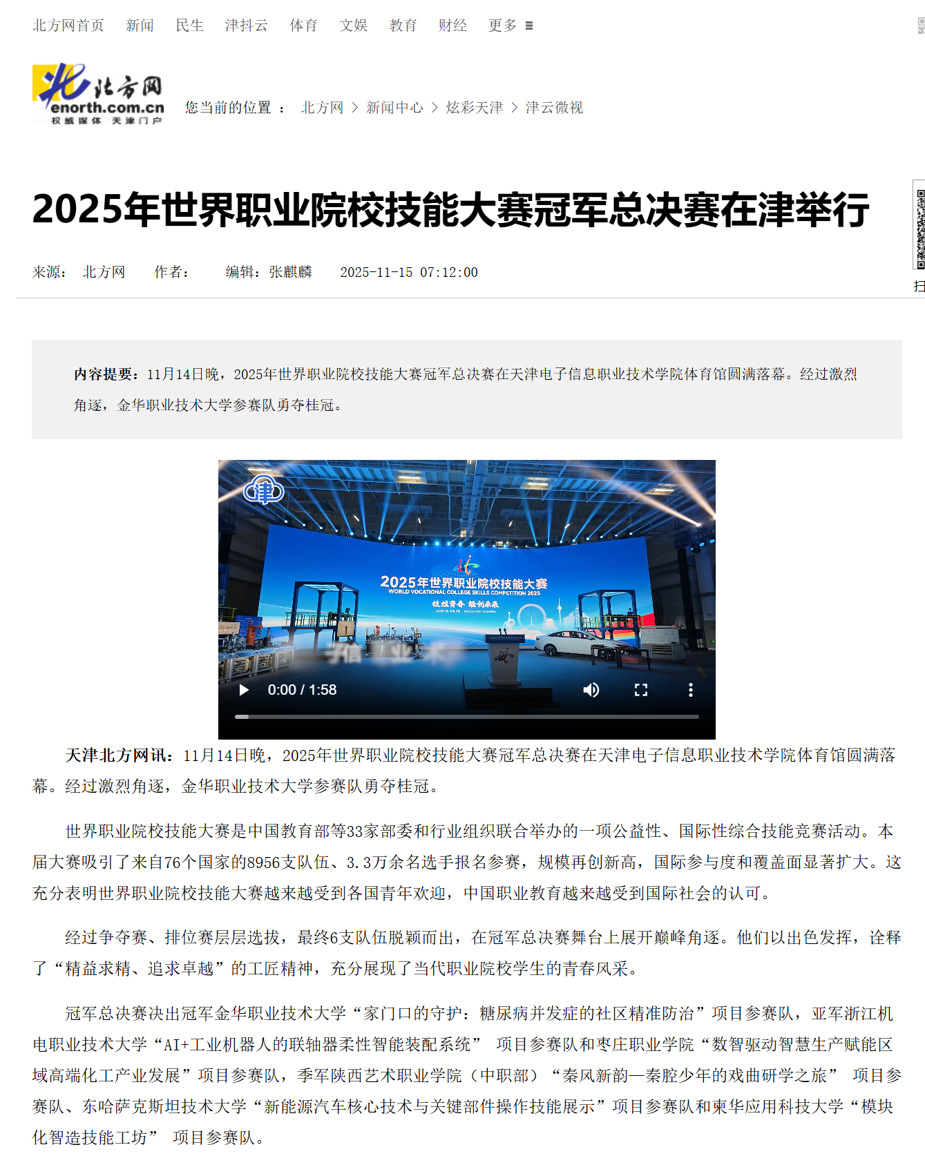 北方网:2025年世界职业院校技能大赛冠军总决赛在津举行