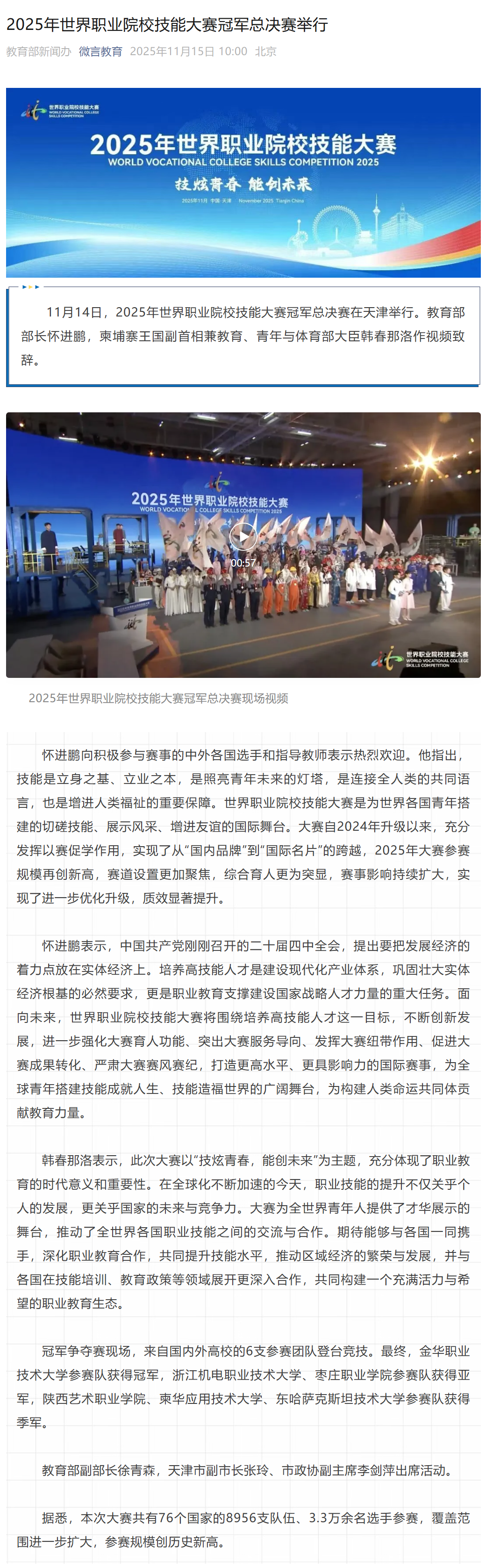 微言教育:2025年世界职业院校技能大赛冠军总决赛举行