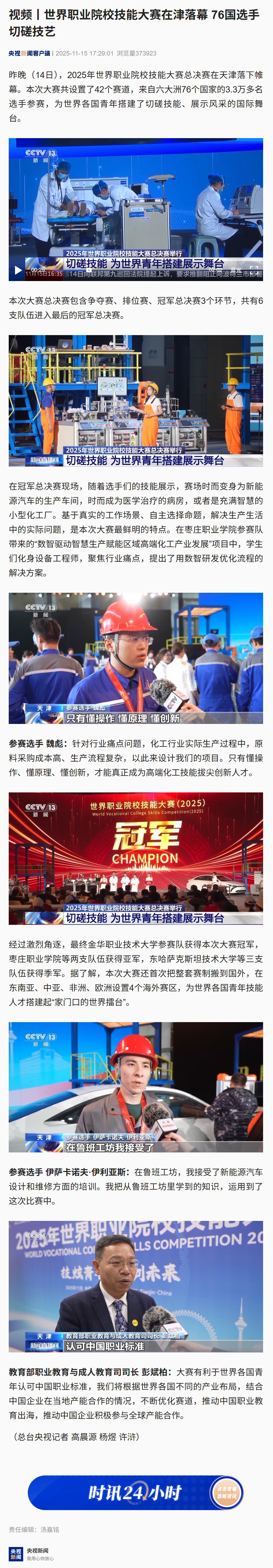 央视新闻客户端:视频丨世界职业院校技能大赛在津落幕 76国选手切磋技艺