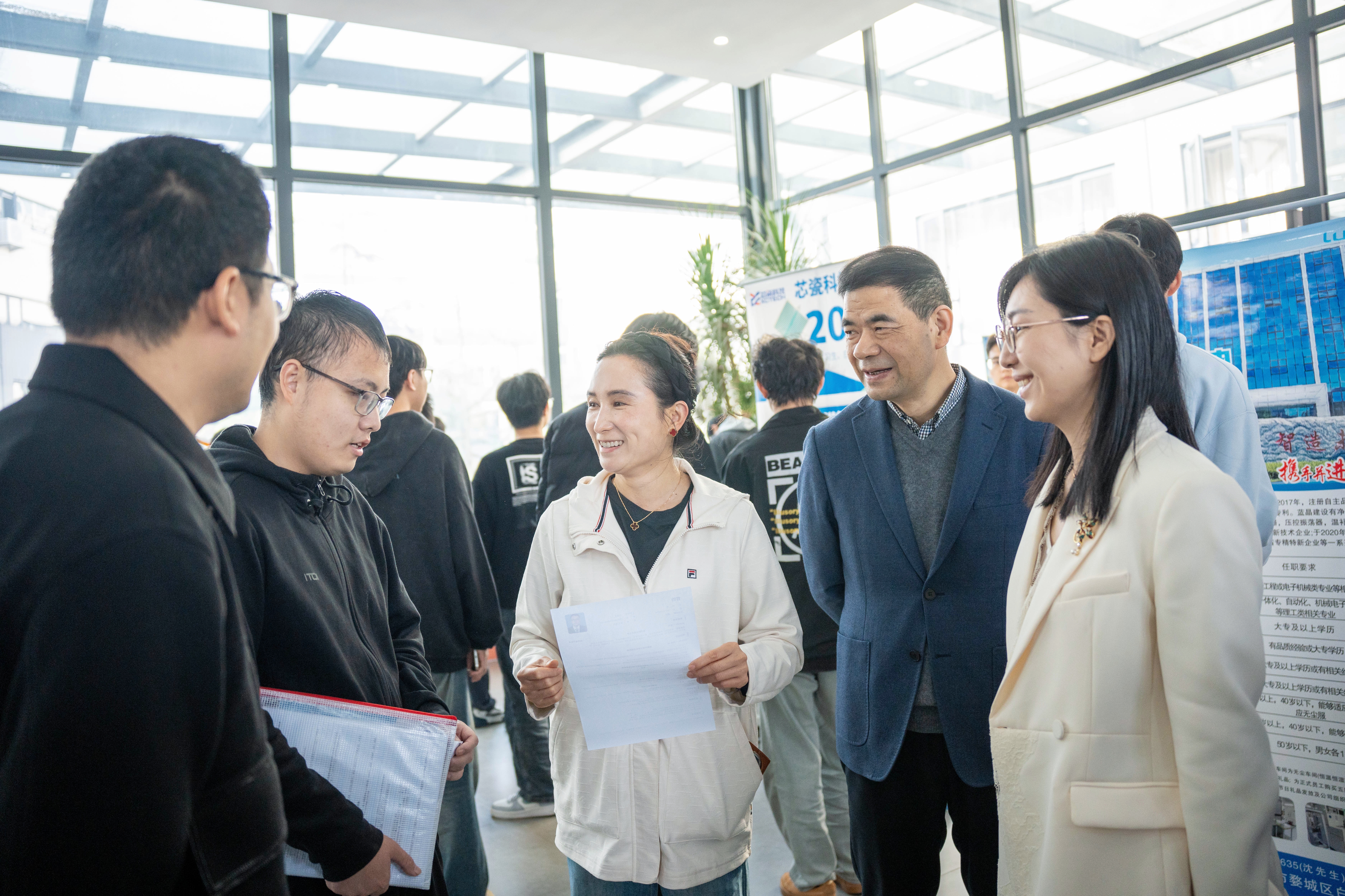 招聘会上,陈夙向来校招聘的企业代表致以诚挚感谢,并与用人单位就信息技术行业的发展趋势、岗位需求及招聘条件等进行深入的交流。她指出,学校始终将毕业生就业工作摆在重要位置,此次专场招聘会是精准对接产业需求、畅通人才供需渠道的重要举措。同时,她还亲切关心毕业生的就业准备情况,鼓励毕业生积极面对未来职业道路的挑战,给予深切的期望与关怀。