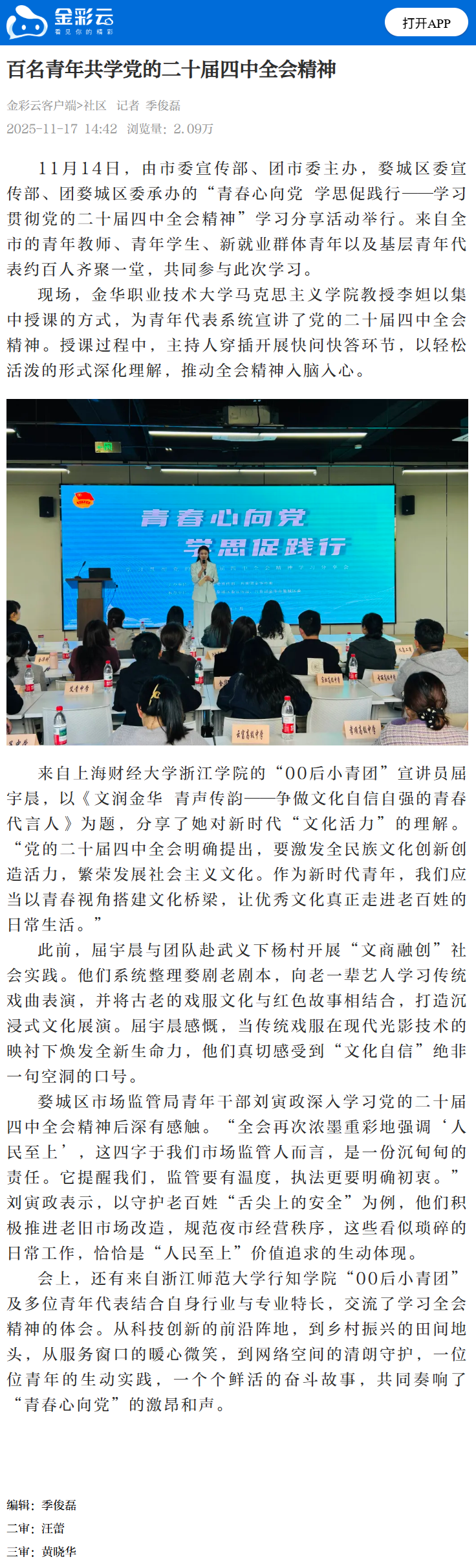 金彩云客户端:百名青年共学党的二十届四中全会精神