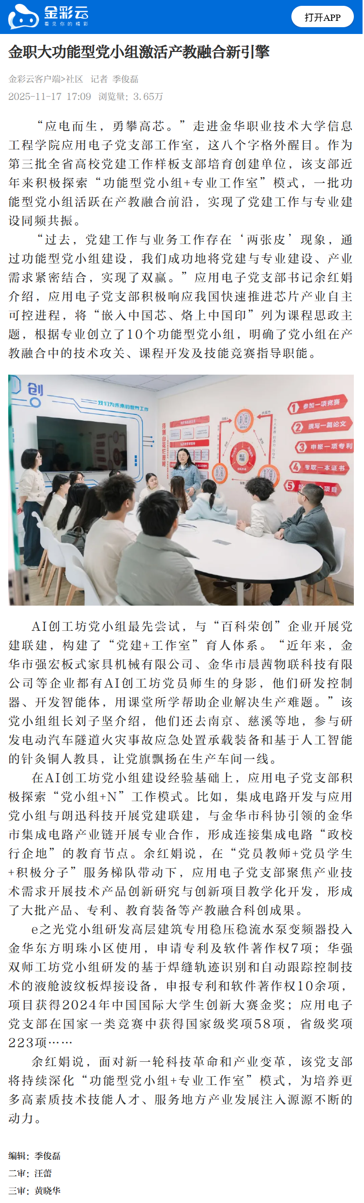 金彩云客户端:金职大功能型党小组激活产教融合新引擎