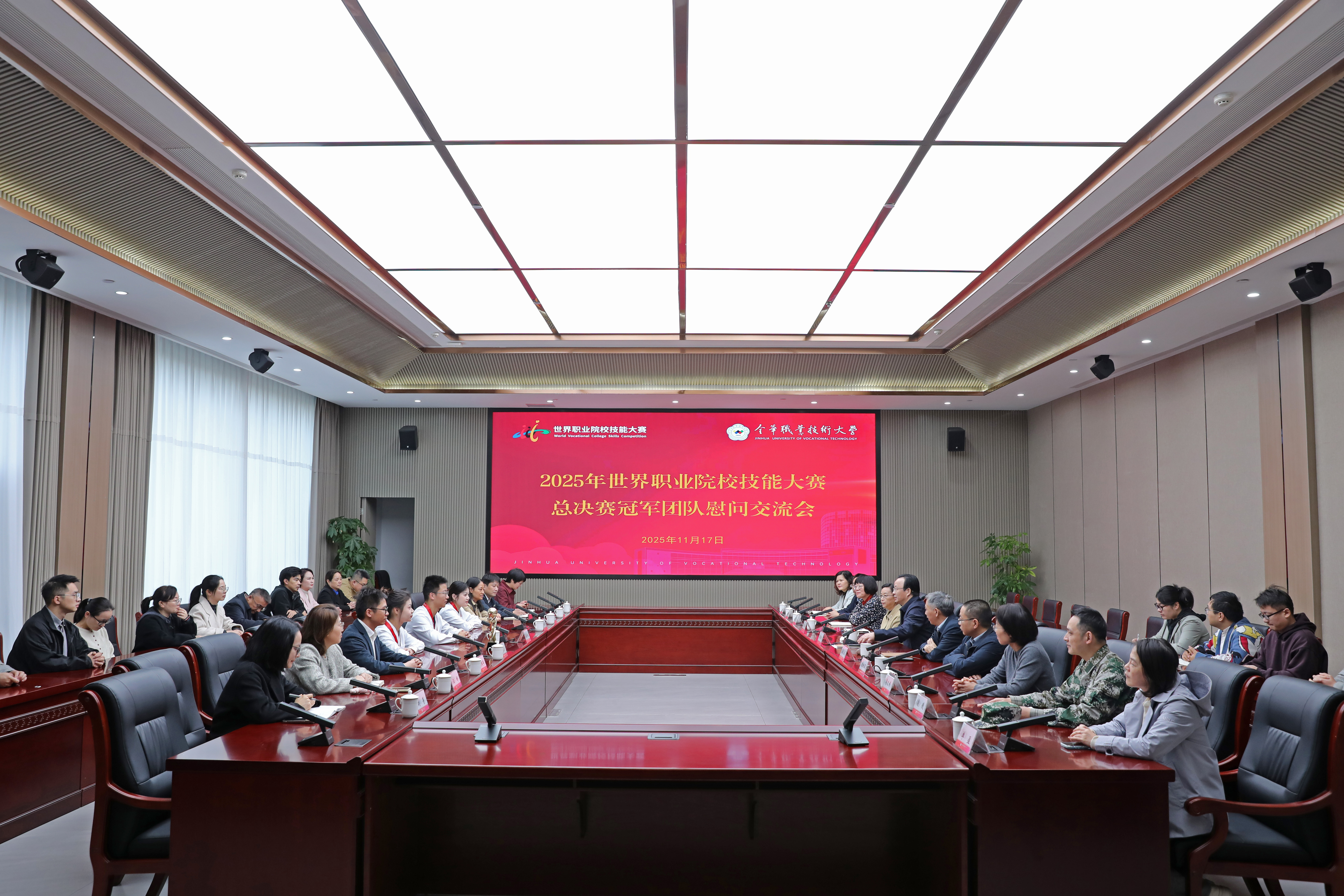 11月17日一早,为迎接世界职业院校技能大赛总决赛冠军团队载誉归校,学校举行了热烈而温馨的慰问交流会,校党委书记王振洪、校长梁克东出席活动并对冠军团队予以亲切慰问。副校长卢小珍、朱钢国,党委委员、宣传部部长李文婷,总督学成军,办公室、学工部、教务处、实验室管理处、医学院相关负责人参加。