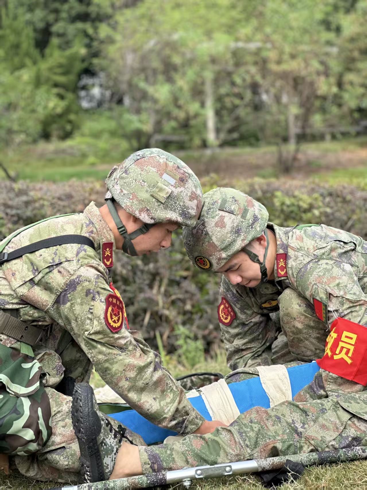 在前期组织过程中,学校广泛发动退伍士兵自主报名,经过层层选拔,最终遴选出综合表现优异的五位学生,代表婺城区参加金华市民兵大比武。本次民兵比武共有战场救护、地面防卫等项目,在集中培训时,他们秉持在部队养成的严谨作风,以实战标准严格要求自己,在训练中刻苦钻研、精益求精,以最佳状态参与比武。