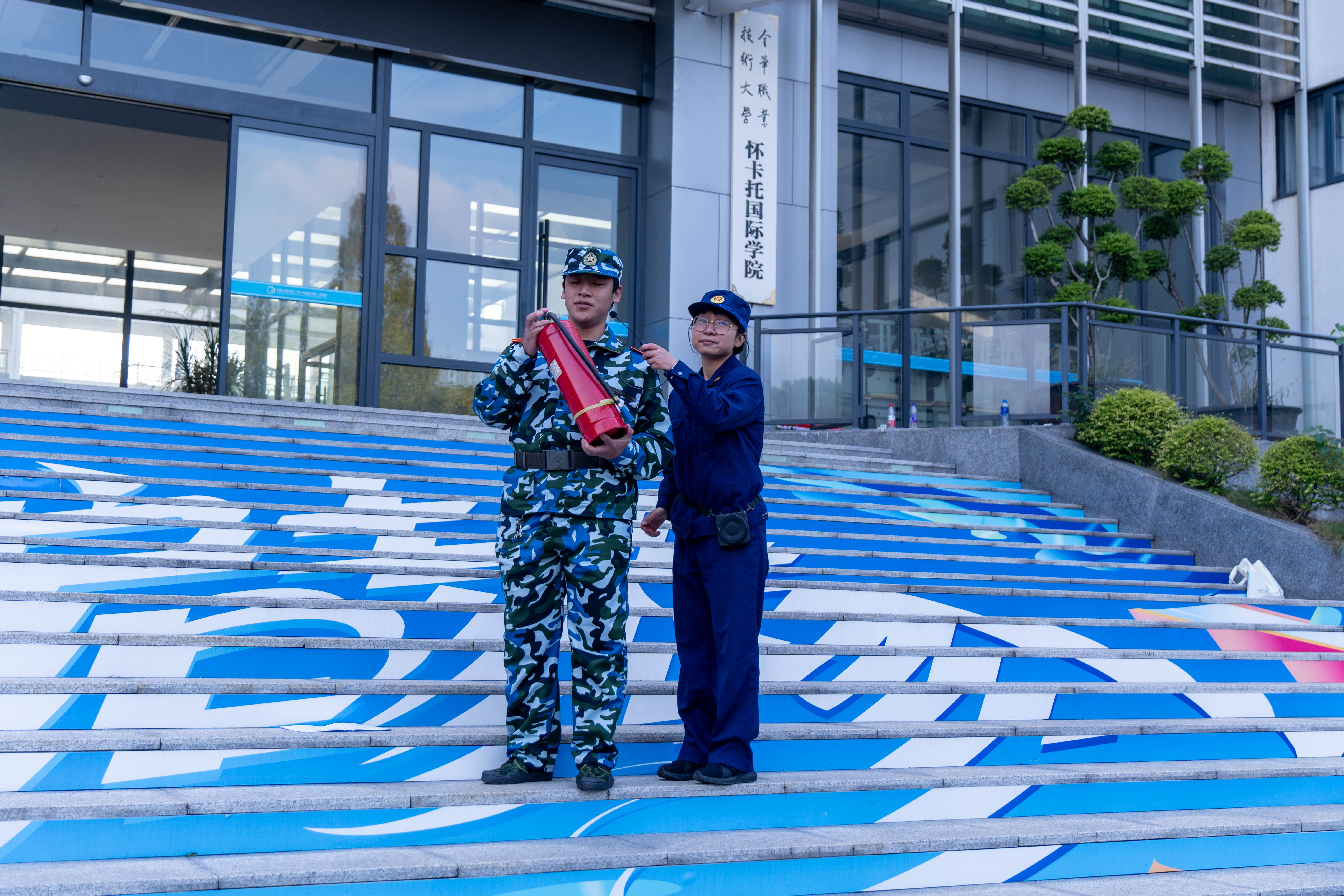 江南消防大队警官则通过展示触目惊心的火灾现场图像与视频,生动诠释“隐患险于明火,防范胜于救灾”的重要性。她系统讲解了教学楼、宿舍等重点场所的火灾风险,并现场演示如何预防电器火灾、使用灭火器与消火栓,以及火场逃生自救的基本方法。