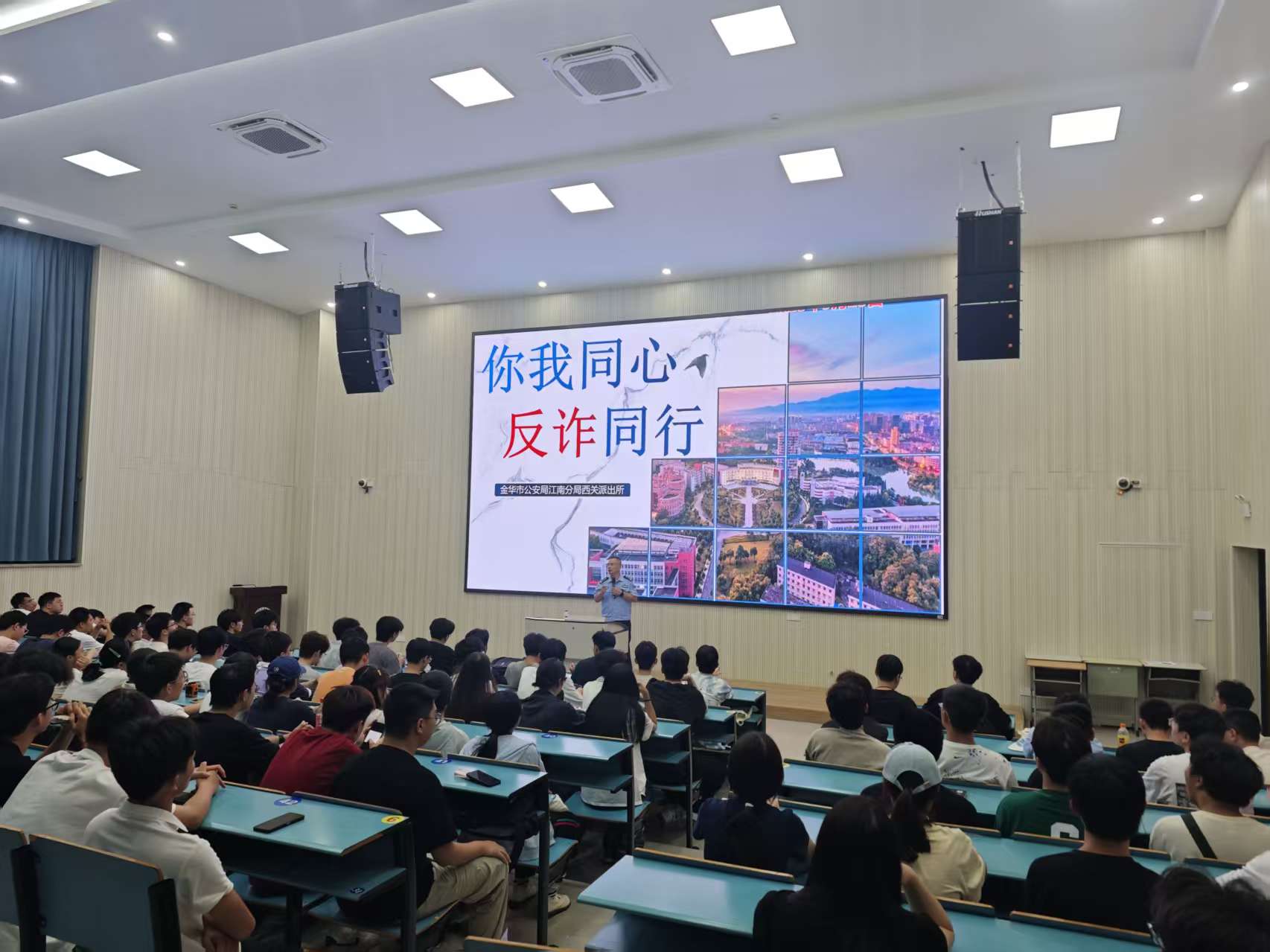 为进一步增强新生安全防范意识,筑牢校园安全防线,近日,信息工程学院(怀卡托国际学院)面向2025级全体新生,组织开展了以“反诈防骗”与“消防安全”为主题的系列宣讲活动。活动采用“集中教育+军训嵌入”双阶段模式,特邀西关派出所民警与江南消防大队消防员联合讲授,为同学们带来一堂生动而实用的“大学安全第一课”。