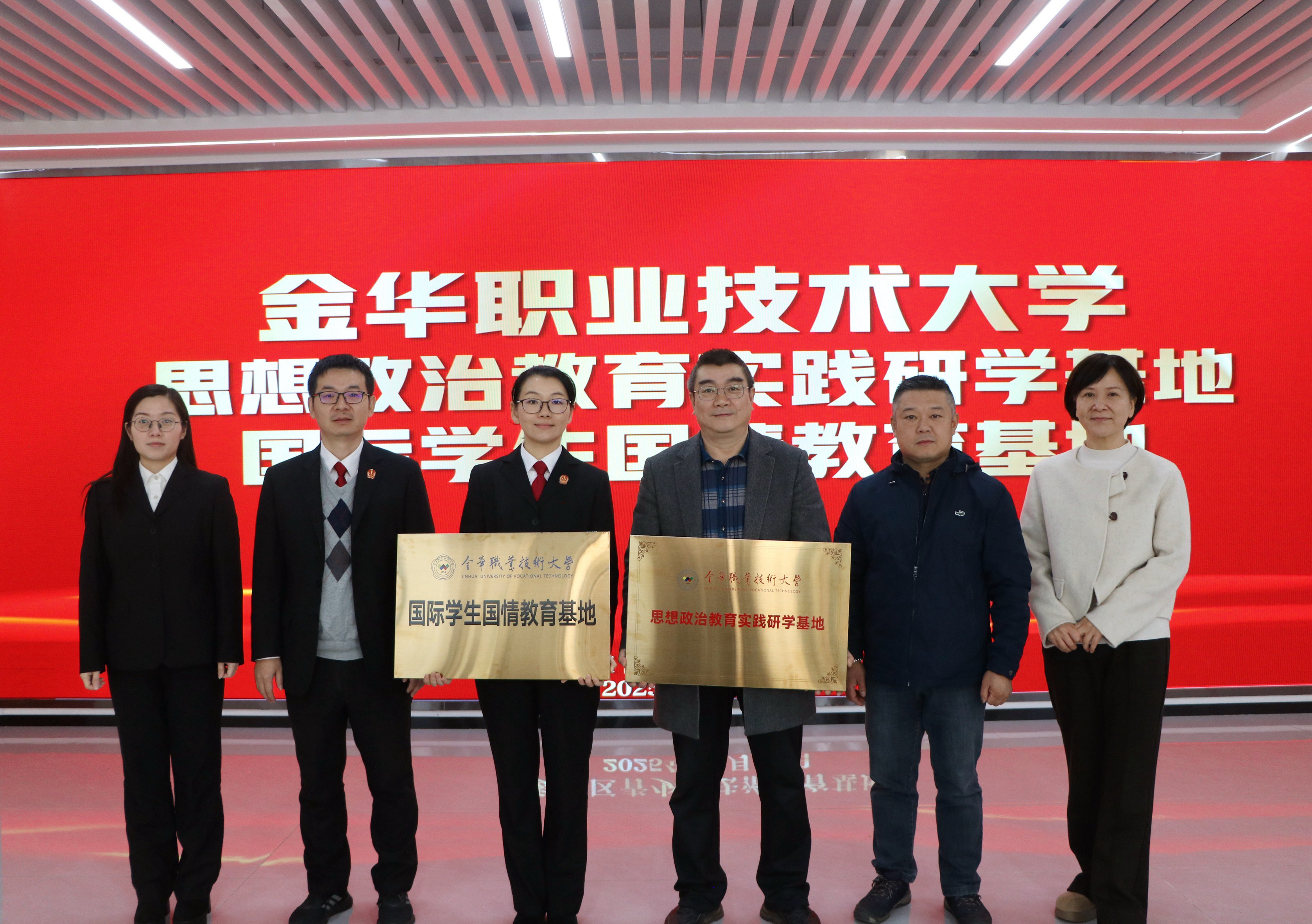为深入贯彻落实立德树人根本任务,构建“大思政课”格局,推进大中小学思政教育一体化建设,加强国际留学生国情教育研究,11月19日,金华职业技术大学马克思主义学院与婺城区人民法院举行基地签约挂牌仪式。