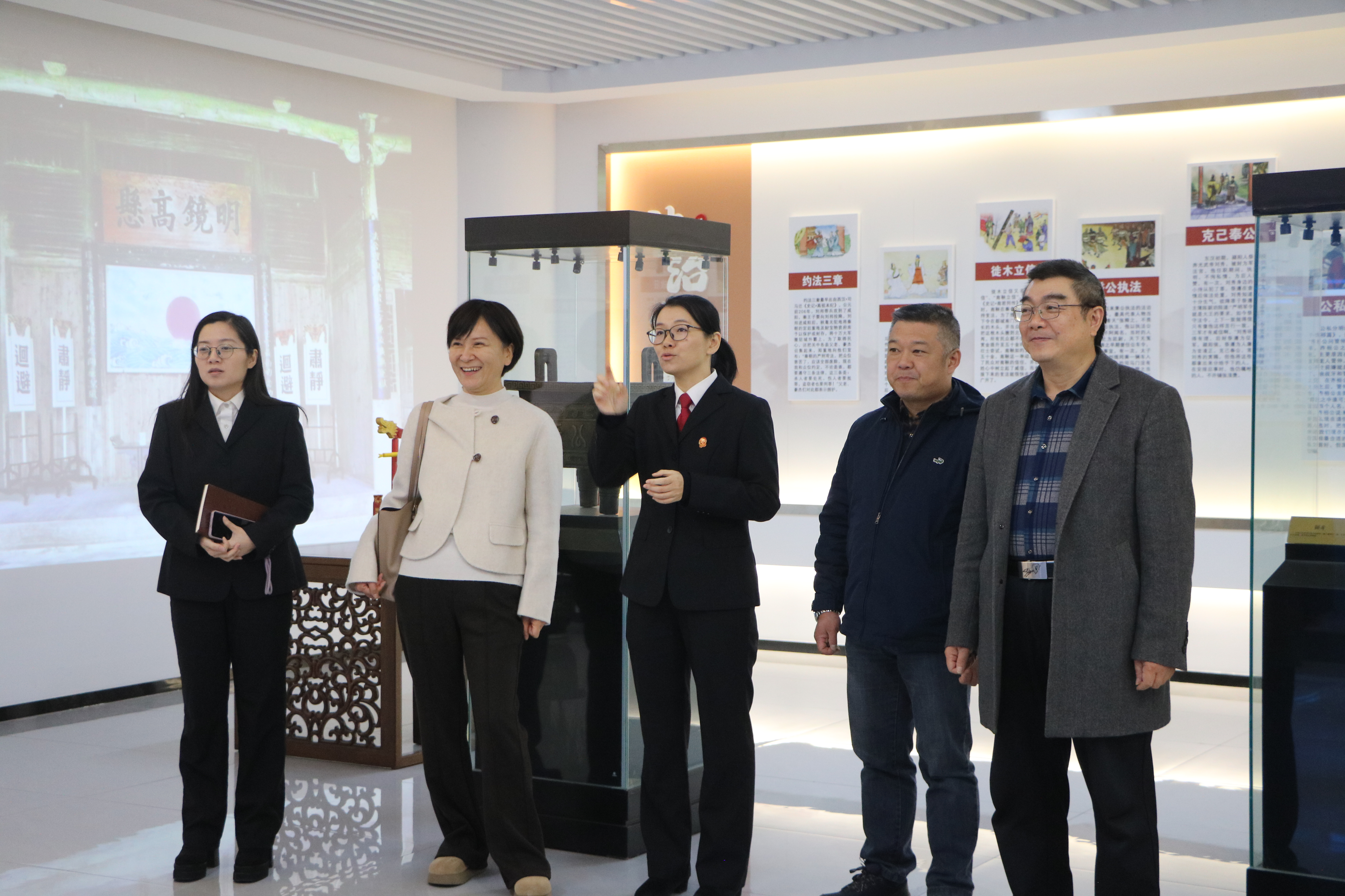 挂牌仪式结束后,在婺城区人民法院副院长李晔等一行人的带领下,参观了位于法院白龙桥法庭的青少年法治教育基地,该基地是校院基地共建的核心实践场所与重要载体,在浙江省内和全国有一定影响力。通过实地观摩基地内的法治文化展区、模拟法庭、互动体验区等功能区域,大家充分了解了基地在法治课程开发、案例教学陈设、青少年法治实践活动设计等方面的特色与优势。