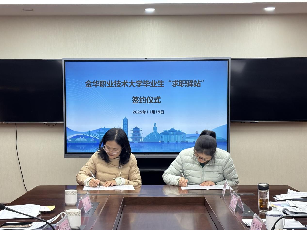 在校地双方代表的见证下,学校就业指导处与诸暨市人社局的相关负责人签署了毕业生“求职驿站”协议。双方将充分发挥各自优势,未来将就业服务工作做到学生“心坎上”,落到地方“需求点”。