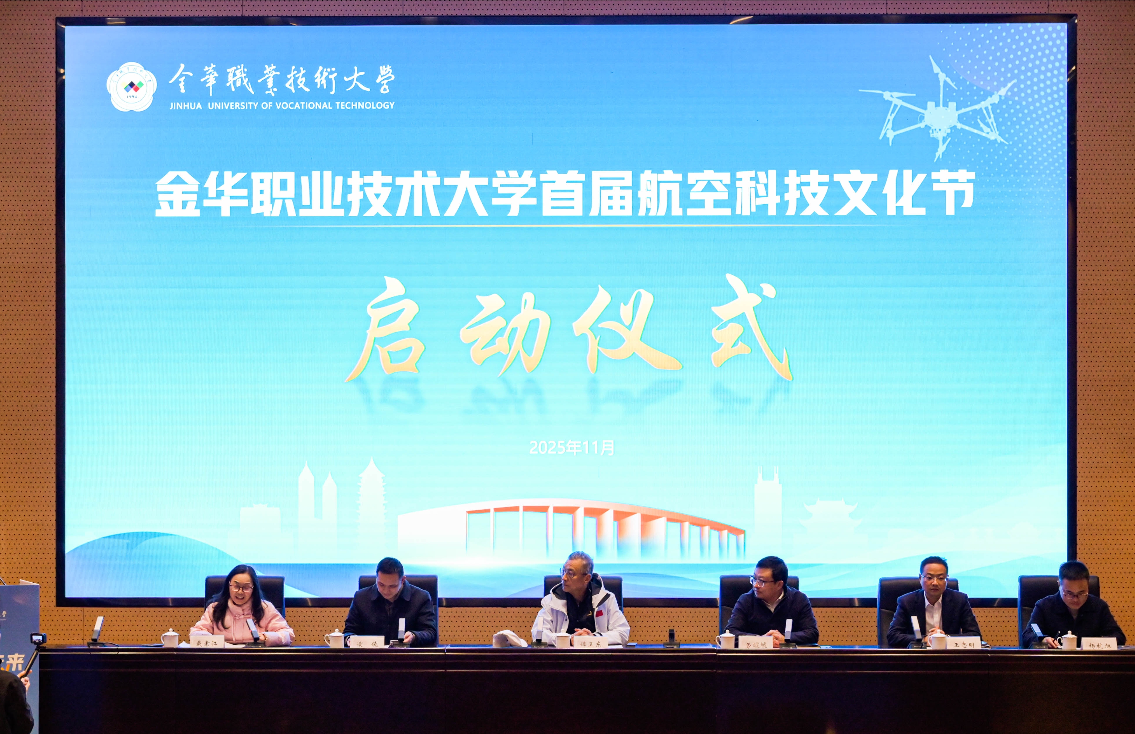 11月20日,金华职业技术大学首届航空科技文化节在明德报告厅与科实北小广场同步启动。中航工业原总经理助理、金职大航空工程学院名誉院长谭卫东,校党委副书记劳虓虓,学工部、科技处相关负责人,各二级学院工会主席,航空工程学院领导班子与师生代表参加启动仪式。