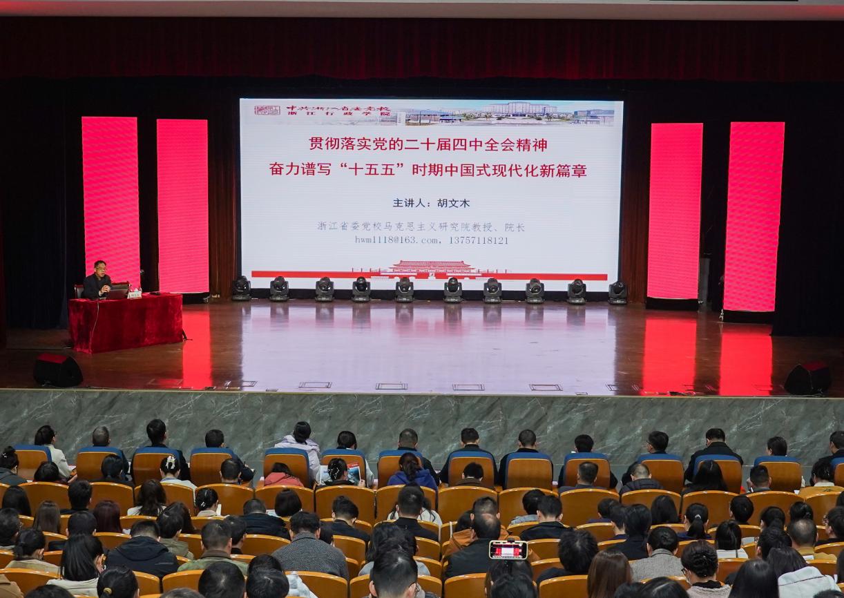 为深入学习贯彻党的二十届四中全会精神,11月26日上午,学校举办“深入学习贯彻党的二十届四中全会精神”专题辅导讲座,特邀浙江省委党校马克思主义研究院院长、浙江省哲学社会科学“十四五”规划专家胡文木教授作专题辅导,学校科级以上干部等参加学习。