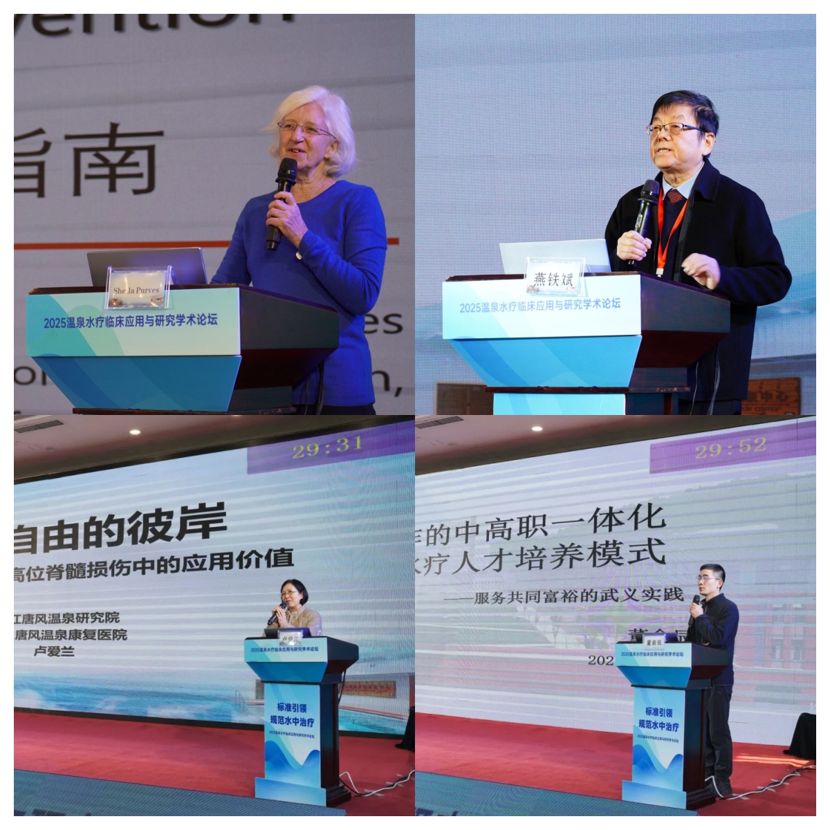 论坛聚焦温泉水疗的临床应用、标准建设、人才培养与产教融合等核心议题。来自世界物理治疗联盟、中山大学、华中科技大学、同济大学、广东省工伤康复医院等单位的权威专家,围绕《国际水中物理治疗干预指南》《中国温泉医康养的最新发展与主要模式》《罕见病水治疗临床应用规范分享》《中国医疗矿泉分类与安全操作规范》等主题作了精彩报告。会议期间还专题研讨了《水疗技术临床应用安全管理规范(草案)》等团体标准的编制工作,推动行业规范化发展。