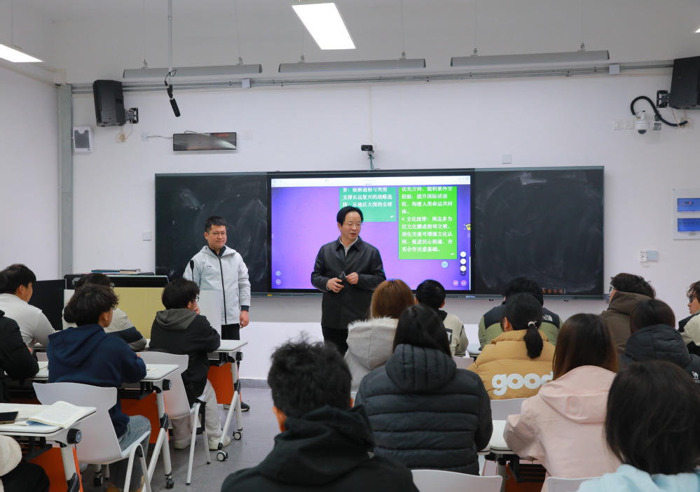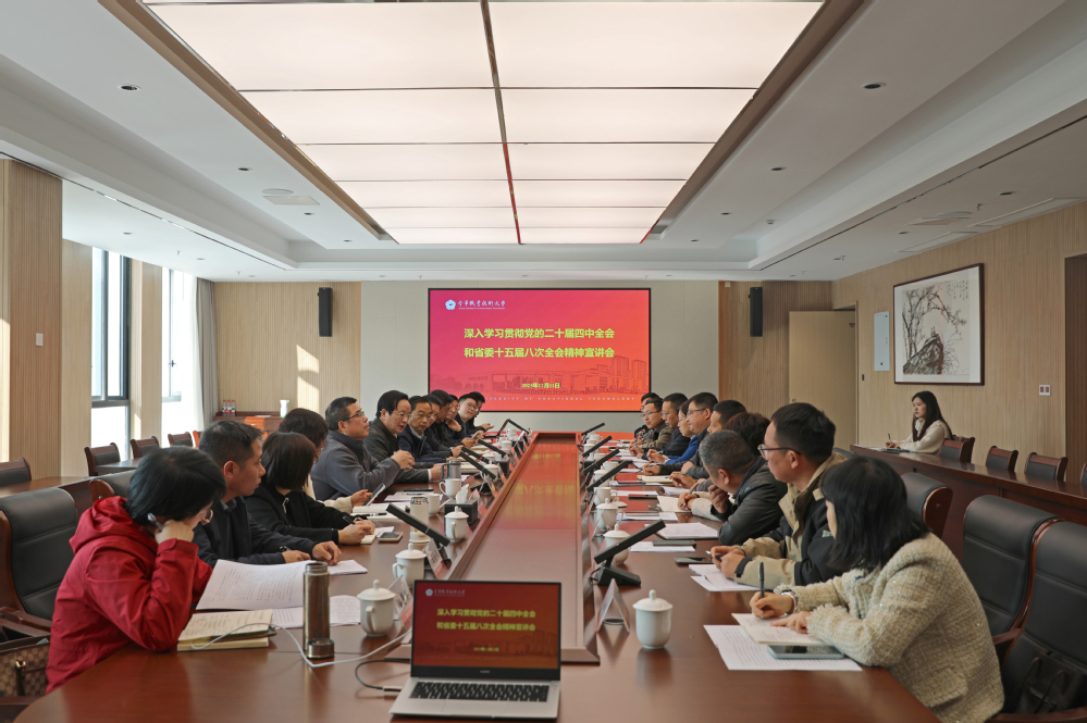 为深入学习贯彻党的二十届四中全会及省委十五届八次全会精神,12月11日,校党委书记王振洪带队赴武义学院,开展全会精神专题宣讲,并通过实地走访、座谈交流等形式调研指导办学工作。校党委副书记楼伟民、学校相关职能部门负责人、专业学院教学负责人,以及武义学院全体班子成员、科级干部参加会议。