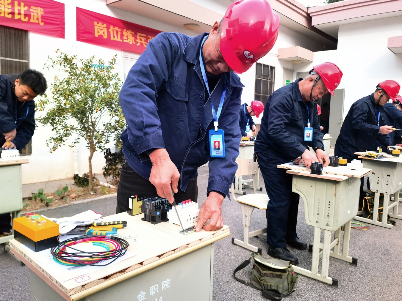 为深入贯彻落实工匠精神,加强高技能人才队伍建设,12月12日下午,金华职业技术大学后勤处首届电工技能比武在35KV变电所隆重启幕。后勤管理处、校园服务保障中心相关负责人出席开幕式。本次比武以“岗位练兵强基础 技能比武促提升”为主题,分为低压维修电工与高压运行电工两个项目,来自后勤一线的电工师傅们同台竞技、尽展风采。