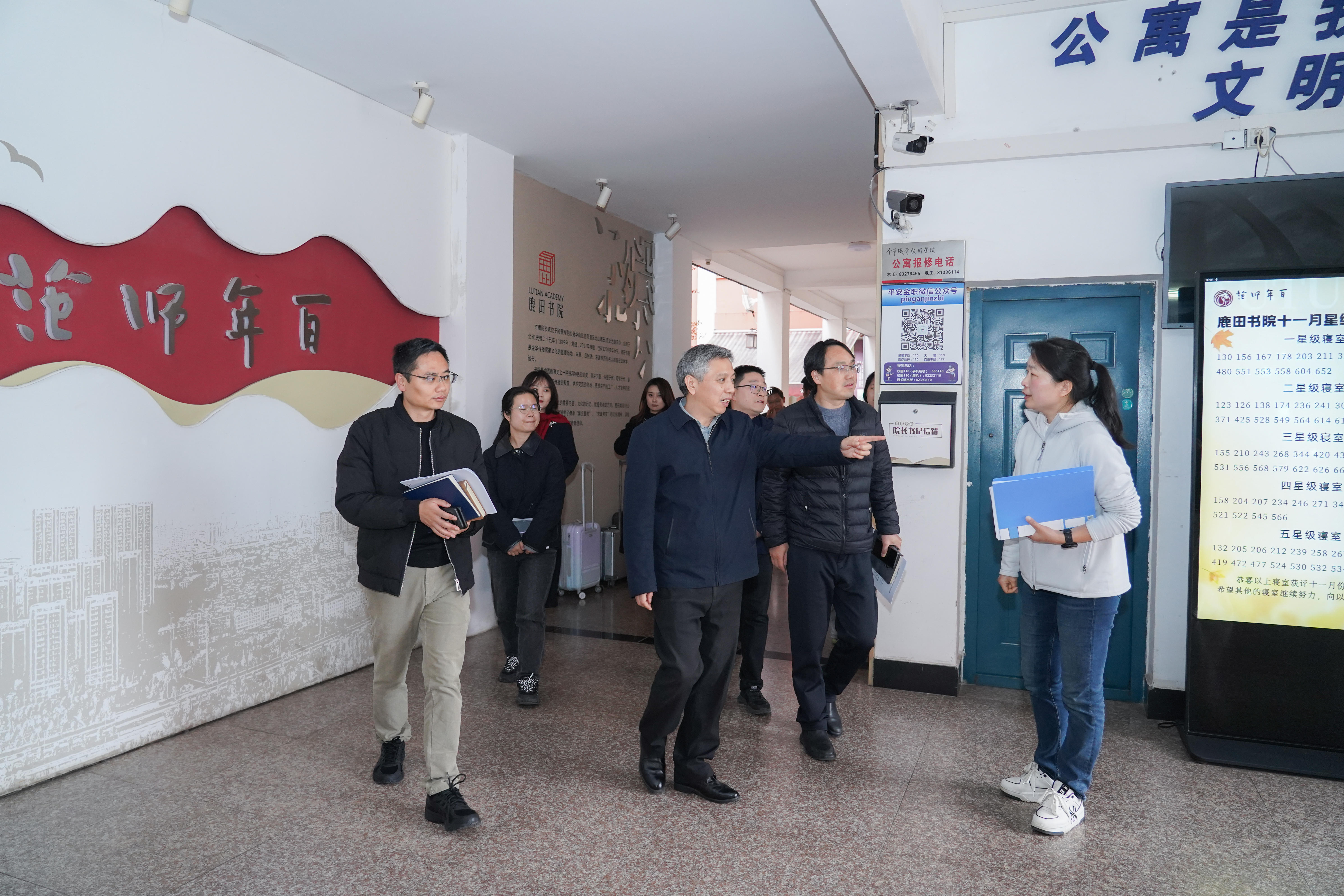 会上,师范学院负责人汇报了学院2025年工作情况与“十五五”发展规划。会后,梁克东一行实地走访了鹿田书院“一站式”社区,与师生现场交流。