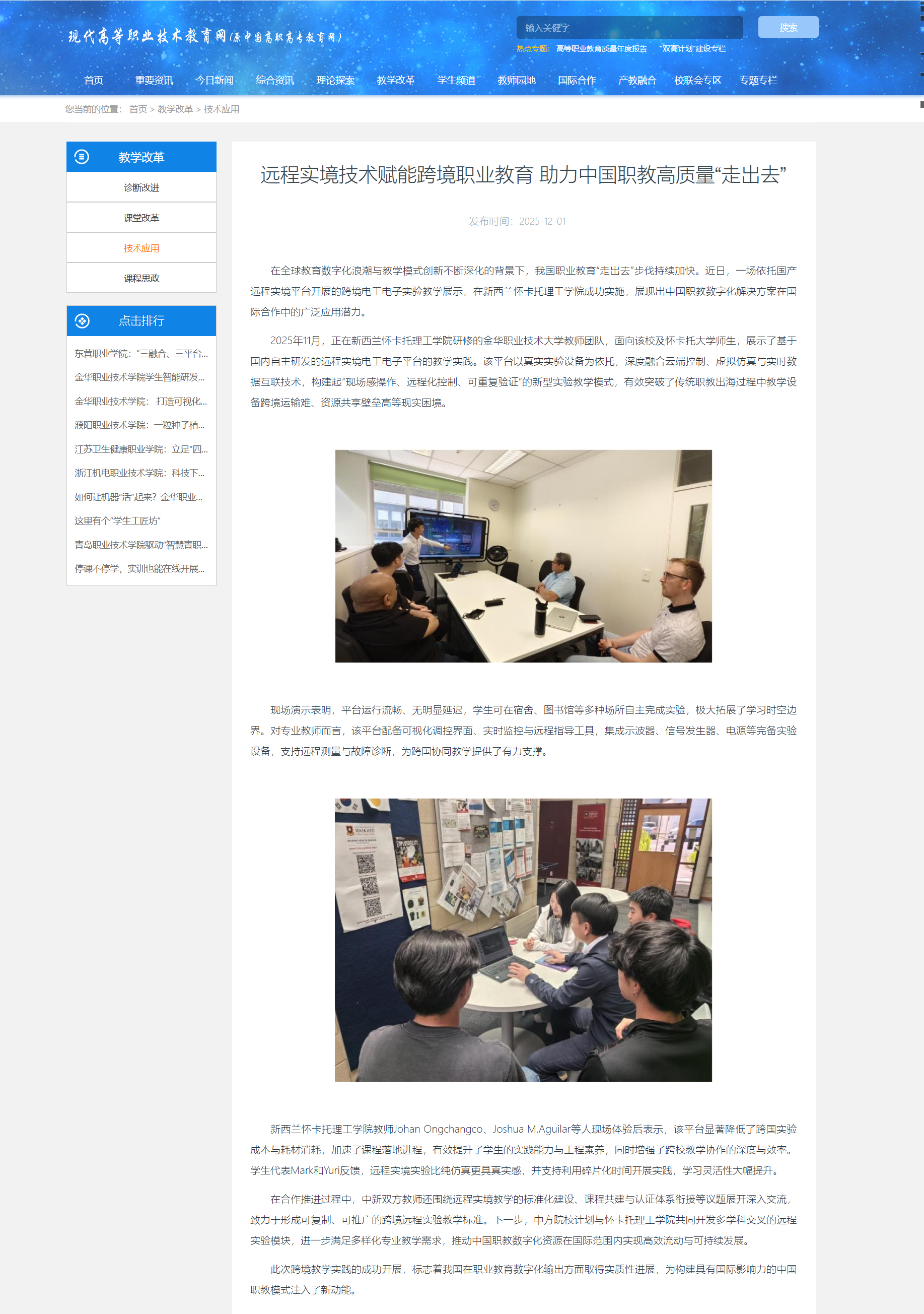 现代高等职业技术教育网:远程实境技术赋能跨境职业教育 助力中国职教高质量“走出去”