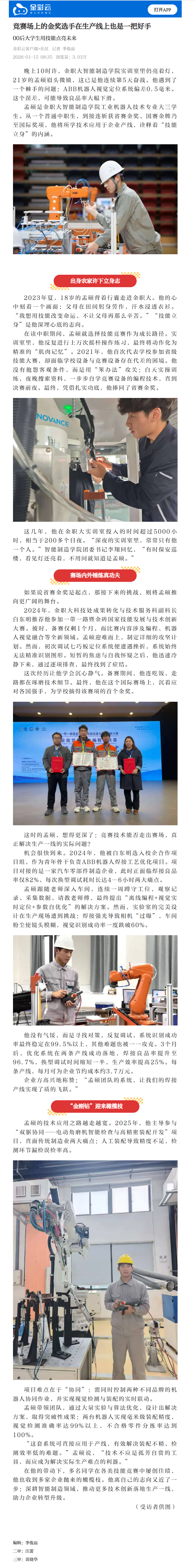 金彩云客户端:竞赛场上的金奖选手在生产线上也是一把好手 00后大学生用技能点亮未来