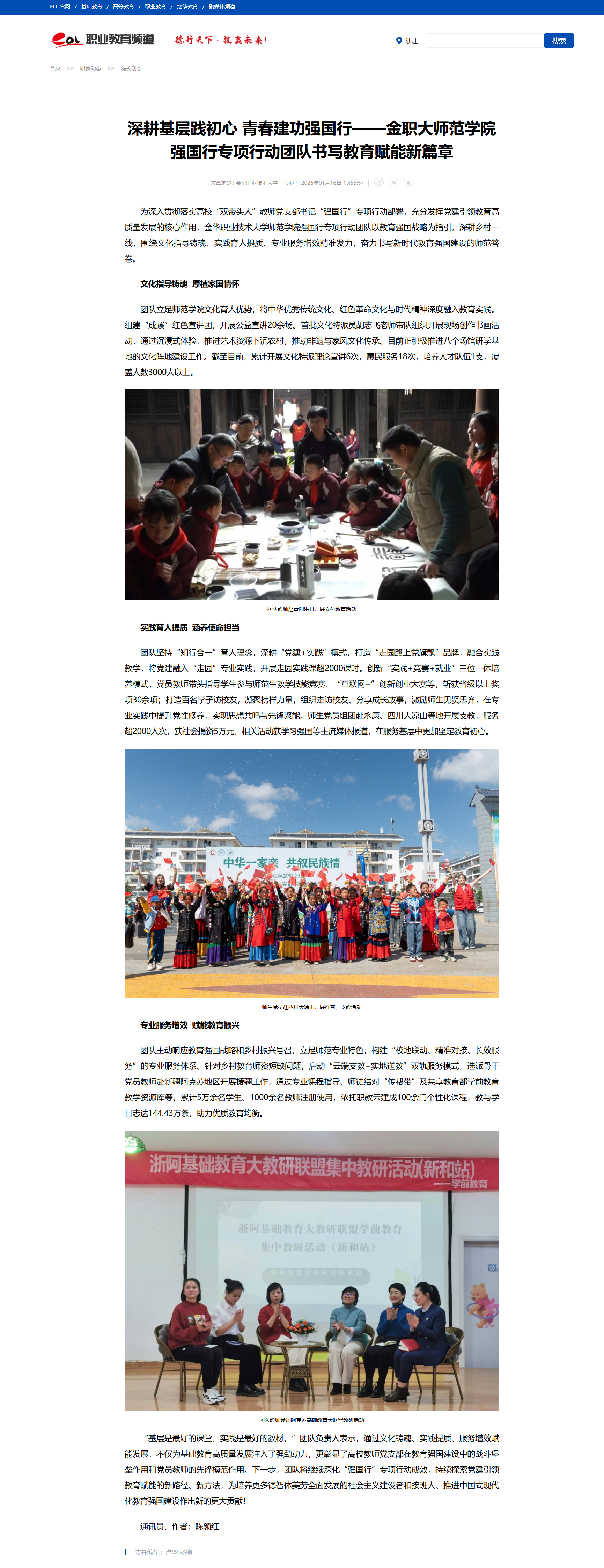 中国教育在线:深耕基层践初心 青春建功强国行——金职大师范学院强国行专项行动团队书写教育赋能新篇章