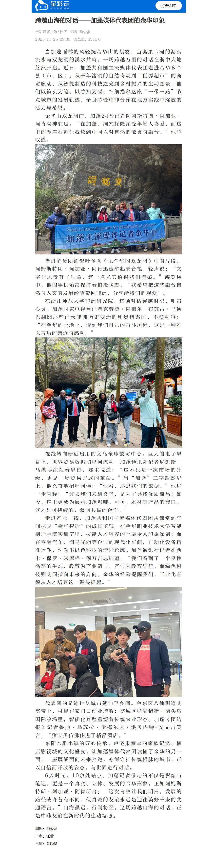 金彩云客户端:跨越山海的对话——加蓬媒体代表团的金华印象