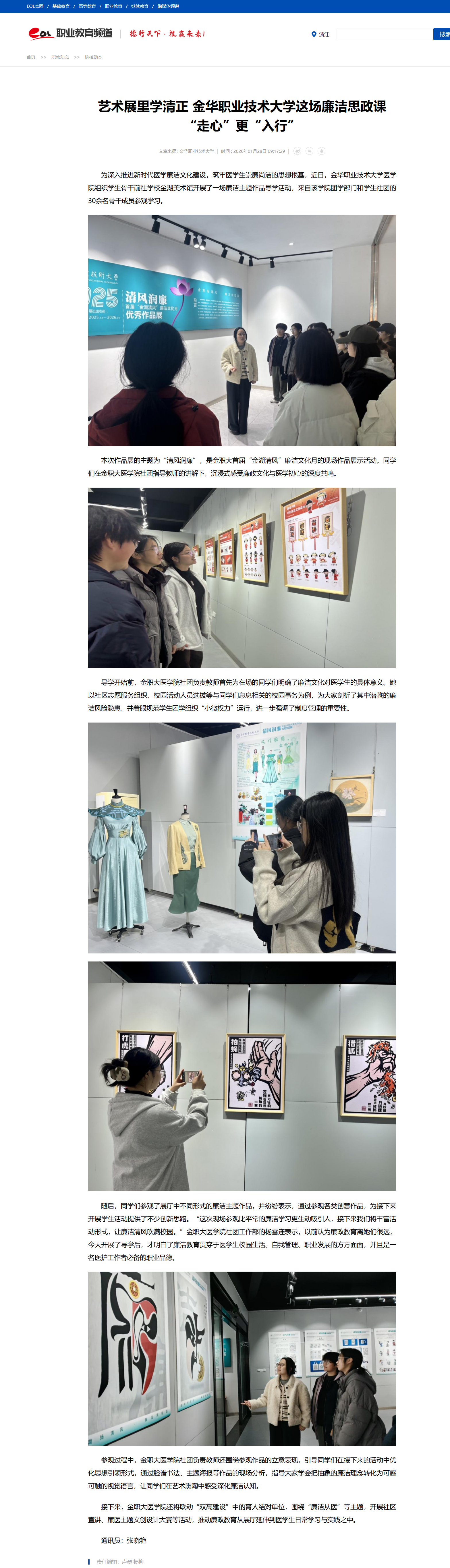 中国教育在线:艺术展里学清正 金华职业技术大学这场廉洁思政课“走心”更“入行”