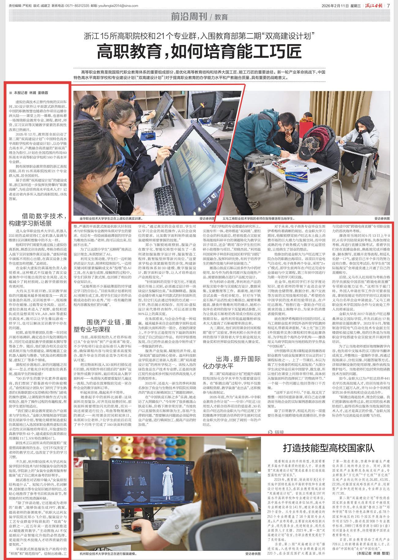 浙江日报:浙江15所高职院校和21个专业群,入围教育部第二期“双高建设计划” 高职教育,如何培育能工巧匠