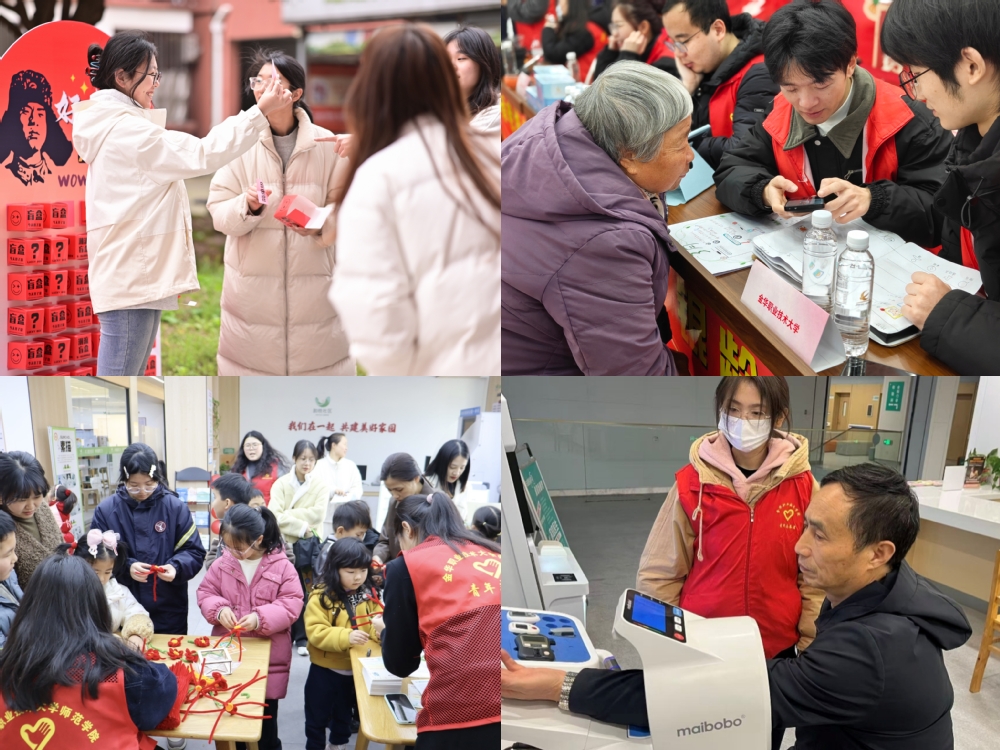 活动中,各学院充分发挥专业优势,打造特色志愿服务品牌:信息工程学院(怀卡托国际学院)推出“童心筑梦、智慧助老、科普传承”三大篇章,以信息技术赋能暖心服务;智能制造学院组建5支志愿服务队,开展校园整治与医疗辅助,服务群众百余人次;航空工程学院以“护航益行”品牌为引领,组织60余人次志愿者参与实训室整理等开学保障工作;制药工程学院通过观影研学与实践服务筑牢思想根基,“阿郎卫士”实践队赴台州椒江开展水质监测等环保行动;建筑工程学院依托“红砖青年”实践队,开展社区微改造调研与防震减灾科普,以专业技能服务社会;农学院结合惊蛰节气开展“惊蛰护绿”绿植养护活动,将劳动教育与雷锋精神相融合;师范学院走进青少年宫,通过手工制作和故事讲解,让雷锋精神在孩童心中扎根;医学院开展西部计划优秀学子云端分享,并在校内设立健康服务站,提供免费测血压、耳穴贴豆等服务;商学院开展“青春续写雷锋日记”团日活动,以美化校园彰显责任担当;文旅学院走进社区,开展环境清洁与助老服务,化身“环境卫士”与“暖心使者”;设计学院打造“设计‘锋’尚,志愿同行”系列活动,以趣味任务和专业创作传递雷锋精神;武义学院组织志愿者开展返校帮扶、文明倡导等校园暖心服务,用点滴行动诠释青年担当。