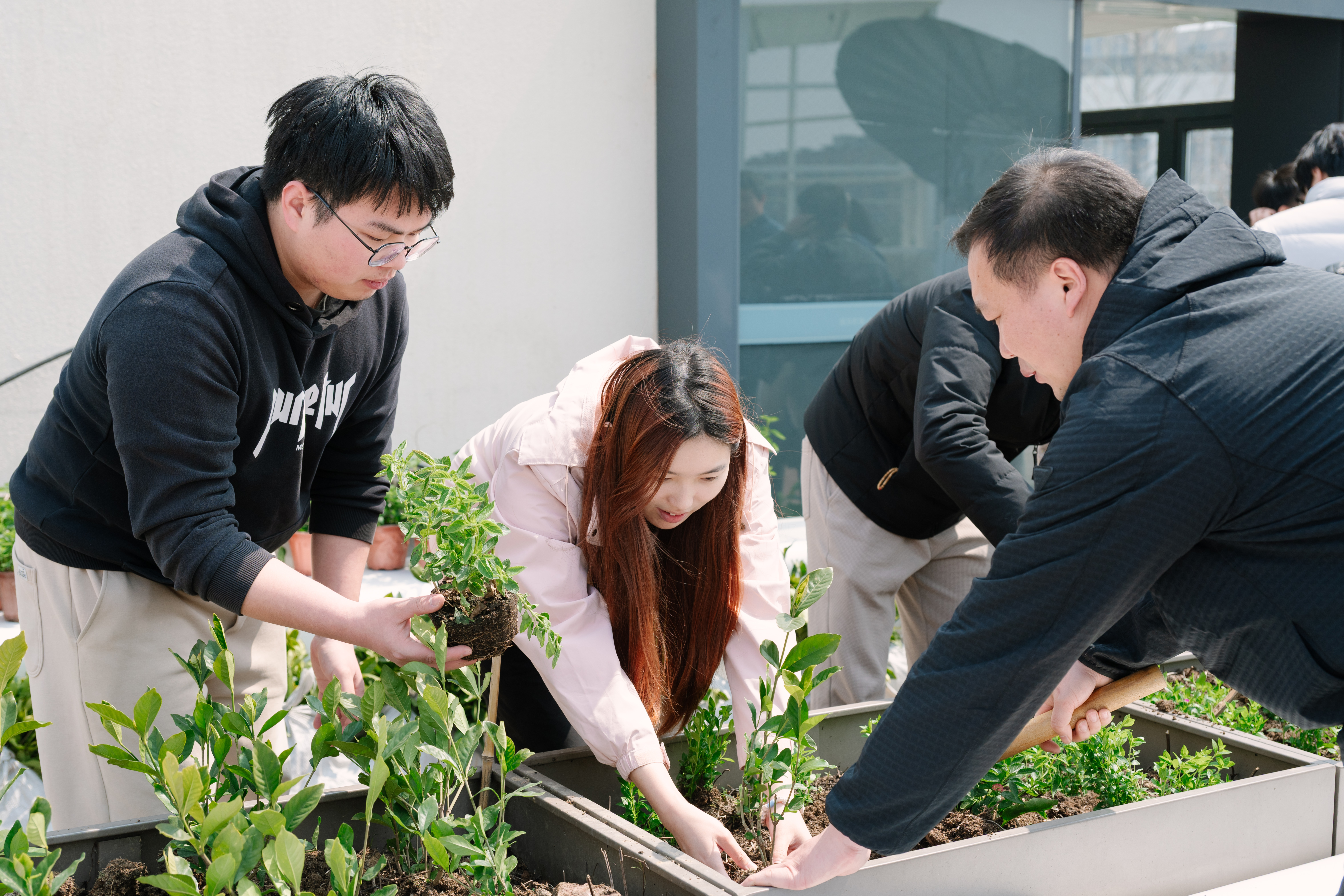 活动伊始,学院党委书记发表致辞。她表示,植树不仅是绿色行动,更是廉政课堂。她勉励党员同志要以植绿润初心,以培土筑廉心,以数智凝匠心,将专业所长与绿色发展、廉洁建设紧密结合,发挥党员先锋模范作用。随后的种植环节,师生党员以支部为单位分工协作,挥锹、培土、扶苗、浇水,大家都格外认真。此外,师生党员还共同体验了智慧农业园的智能设备,亲手完成绿植栽种信息的数字化录入,将信息之“芯”融入绿色实践。