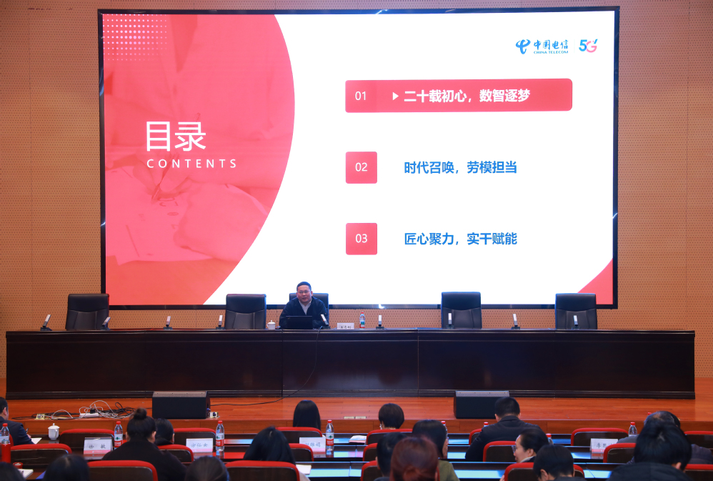 启动仪式后,2025年全国劳动模范、中国电信金华分公司总工程师、首席技术官(CTO)王志刚为在场师生作了精彩的首场宣讲,分享了他数十年如一日坚守一线、深耕技术、精益求精的奋斗历程与感悟,深刻阐释了“沉淀”对于技术革新与个人成长的重要意义,赢得了现场阵阵掌声。