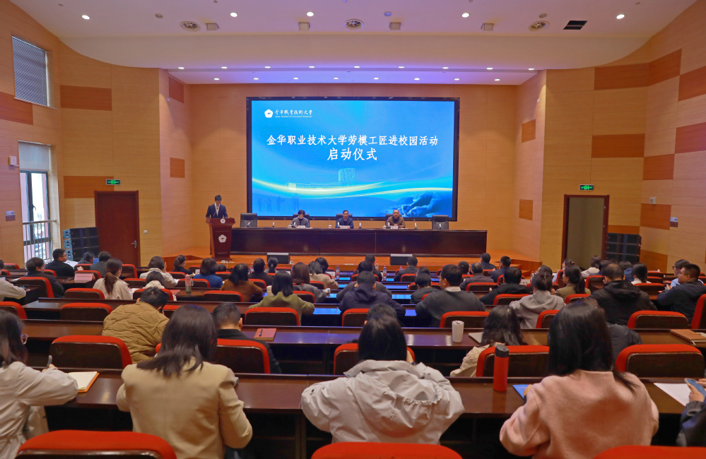 3月19日上午,由校工会和信息工程学院联合举办的“劳模工匠进校园”活动启动仪式在明德报告厅举行。校党委副书记楼伟民,金华市总工会教育工会副主席施剑,相关职能部门负责人,各二级学院师生代表及金华科贸职业技术学院师生代表共同参加活动。