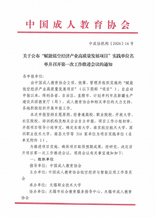 近日,中国成人教育协会正式公布“赋能低空经济产业高质量发展项目”实践单位的入选结果,金华职业技术大学成功入选。此次入选是学校在低空经济领域斩获的又一典型成果,标志着学校在服务国家战略性新兴产业、深化产教融合方面再上新台阶。