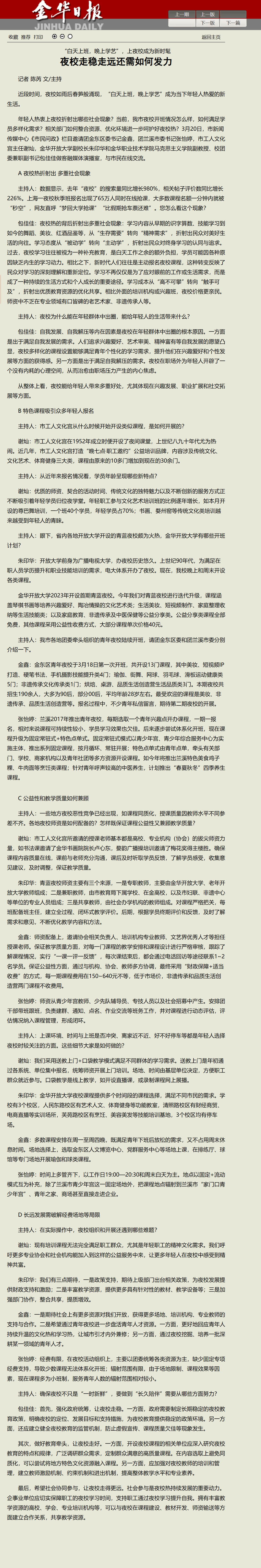 金华日报:“白天上班,晚上学艺”,上夜校成为新时髦 夜校走稳走远还需如何发力