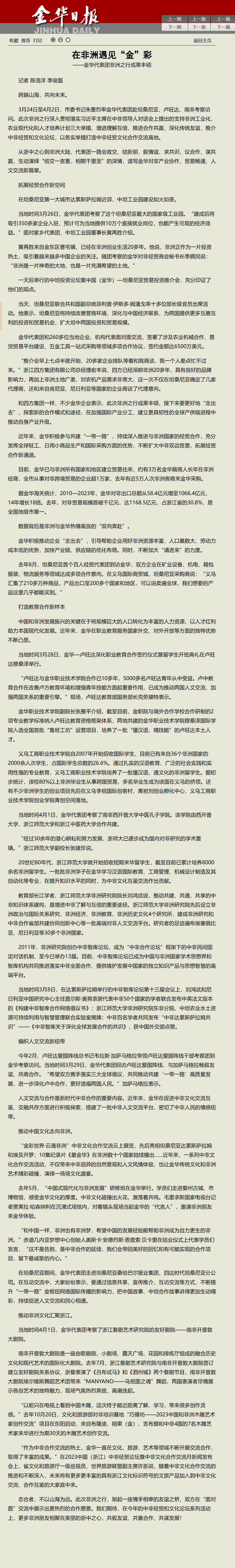 金华日报:在非洲遇见“金”彩 ——金华代表团非洲之行成果丰硕
