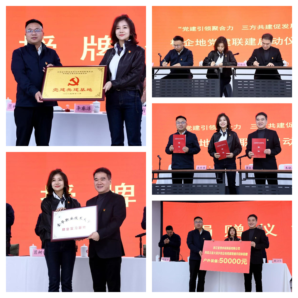 11月6日,由商学院、武义大田乡、浙江圣雪集团三方联合举办的“党建引领聚合力 三方共建促发展”党建联建活动在武义县大田乡岭下汤村“武义国防园”启动。商学院党委负责人、武义县人大常委会副主任、大田乡党委书记、浙江圣雪集团董事长共同出席,见证校企地协同发展新篇章。