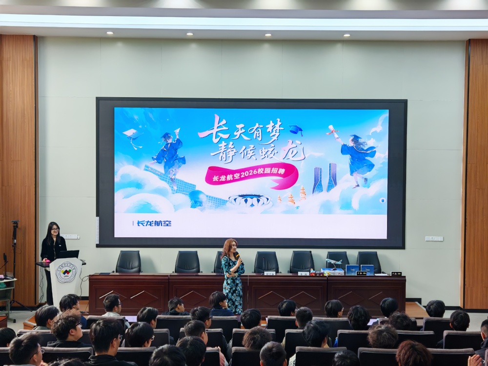 为扎实推进2026届毕业生就业工作,畅通校企人才输送渠道,助力毕业生实现高质量充分就业,11月11日,航空工程学院组织开展浙江长龙航空股份有限公司专场招聘宣讲会。长龙航空人力资源部副总经理程千洳、维修工程经理牛剑、招聘主管张冬冬,学院相关负责人及百余位毕业生参与活动,活动现场座无虚席、气氛热烈。