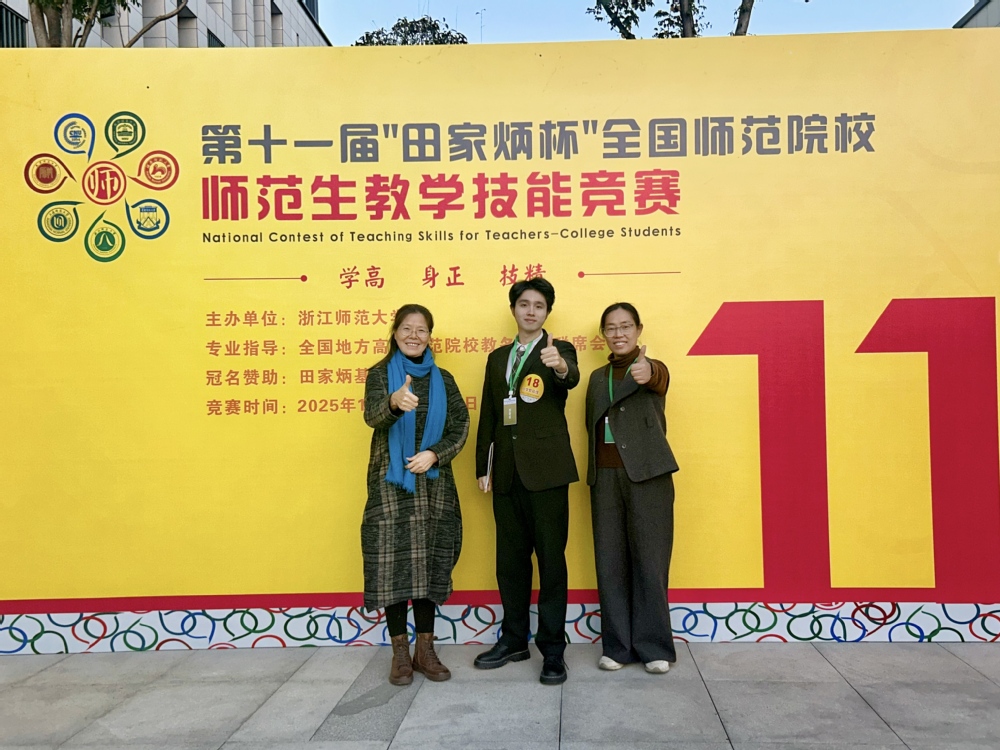 近日,第十一届“田家炳杯”全国师范院校师范生教学技能竞赛决赛在浙江师范大学圆满落幕。师范学院小学教育专业学生楼昊(指导老师:贺亮、邢秀凤、金雨琦)凭借扎实的专业功底、出色的教学技能和稳定的临场发挥,在小学教育组决赛中勇夺一等奖,展现了未来小学教师卓越的综合素养。