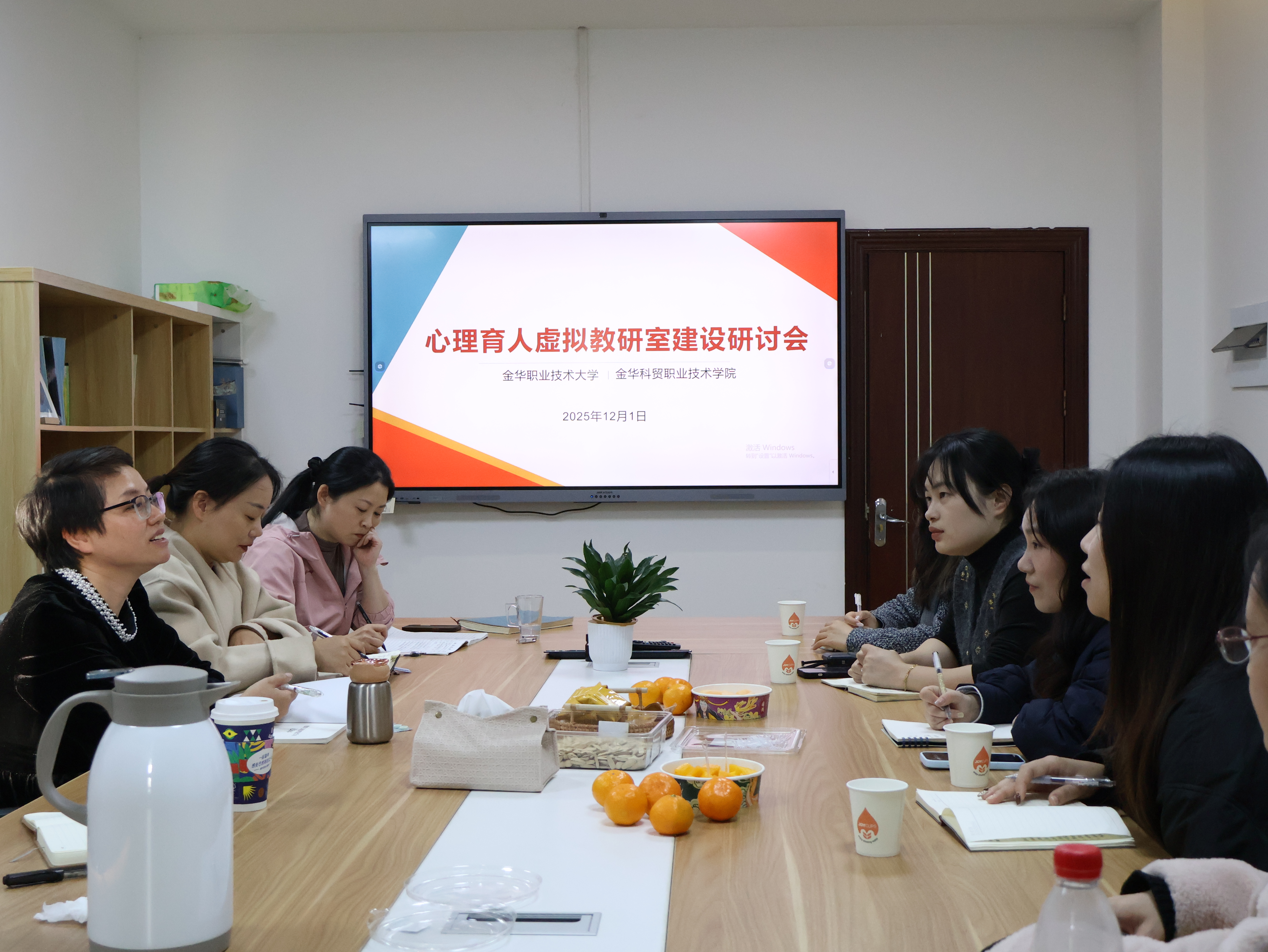 会上,金职大心理中心主任详细介绍了学校心理育人工作机制、特色模式与实践经验,涵盖课程体系构建、咨询服务规范化、校园心理宣传教育活动等多个方面。随后,浙江金华科贸职业技术学院团队结合自身发展实际与共建需求,围绕两校心理育人协作方向与合作重点进行了深入交流。双方聚焦工作队伍建设、心理咨询服务提质、课程教学改革、宣教活动共办等议题展开热烈而务实的讨论,并达成合作共识。