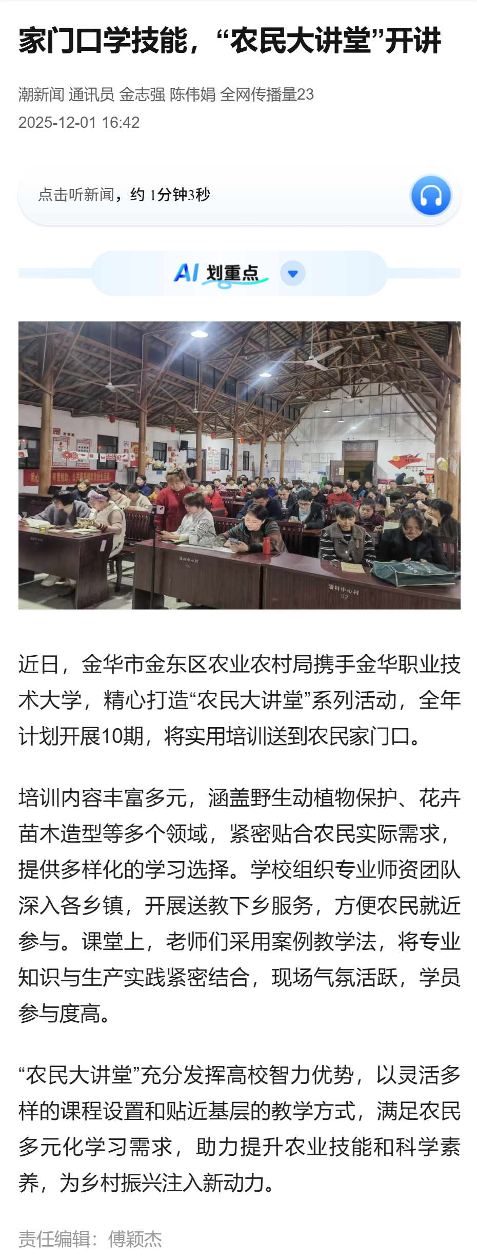 潮新闻:家门口学技能,“农民大讲堂”开讲