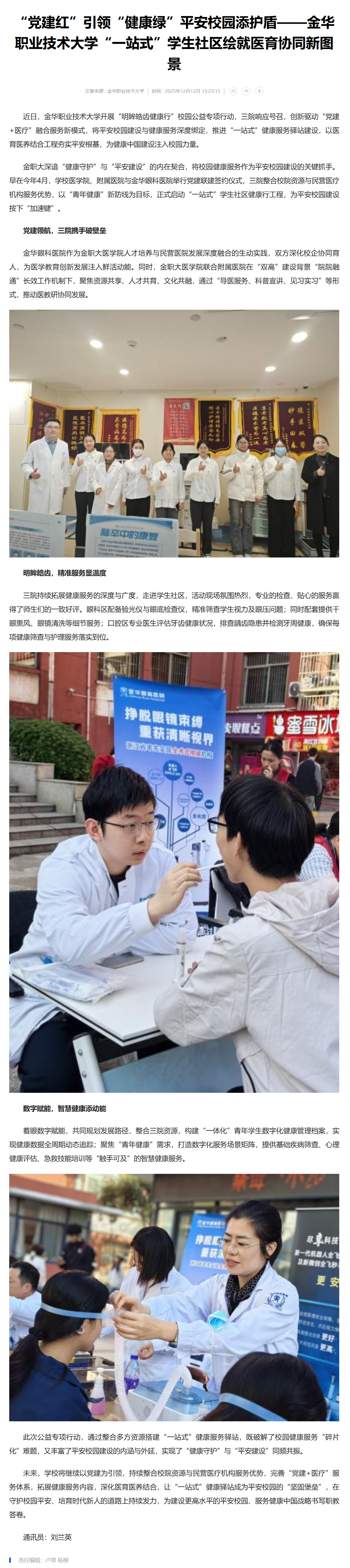 中国教育在线:“党建红”引领“健康绿”平安校园添护盾——金华职业技术大学“一站式”学生社区绘就医育协同新图景