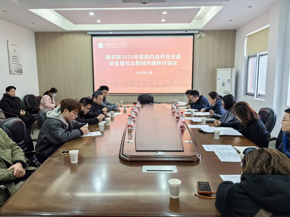 为进一步优化校企合作项目运行和管理机制,深化产教融合、校企共育的实战化人才培养模式,12月17日,商学院组织召开2025年度合作企业座谈会暨校企教材共建研讨会。学院相关负责人与合作企业负责人齐聚一堂,围绕企业和学院的安全管理、教材共建等议题展开深入交流。