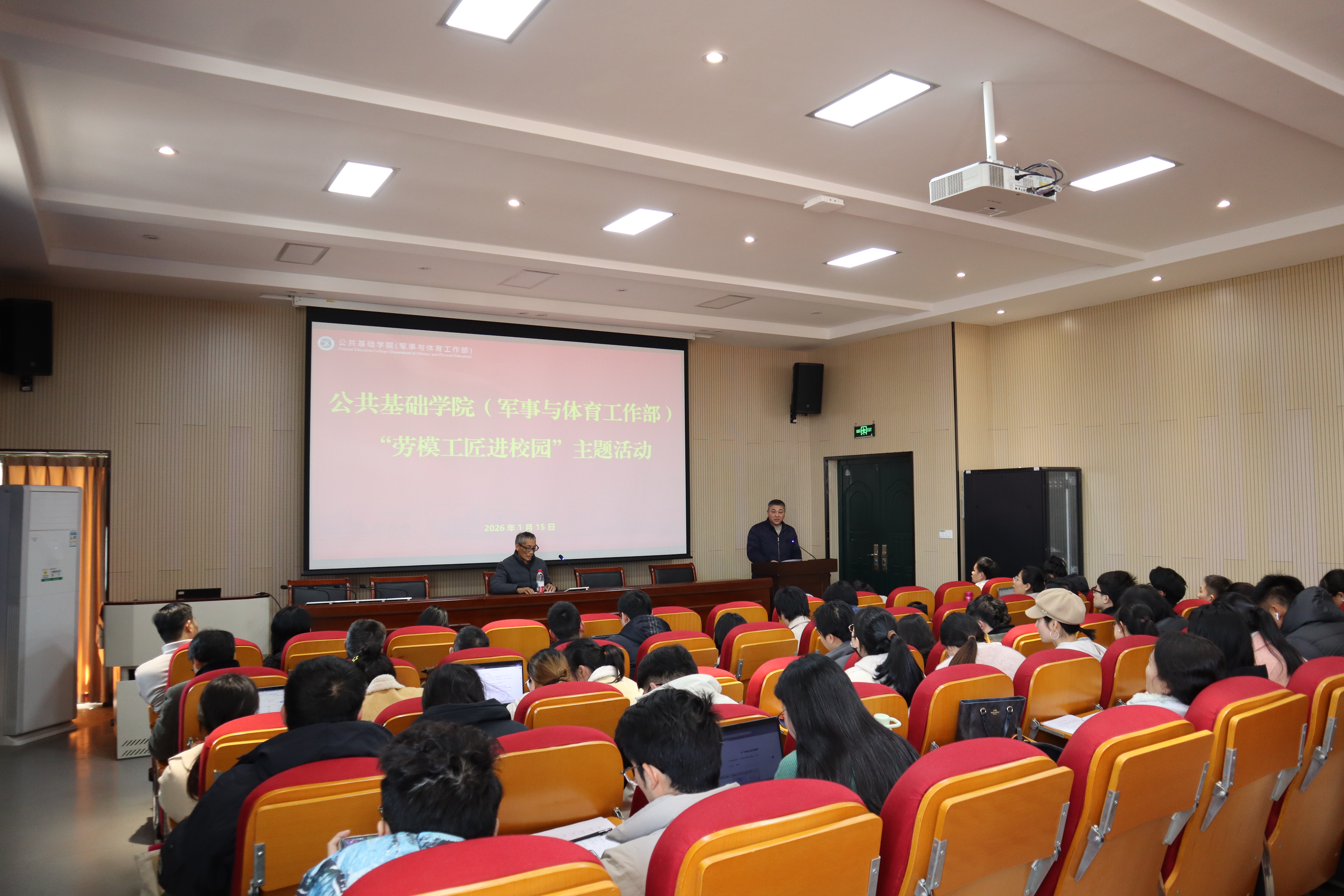 为大力弘扬劳模精神、劳动精神、工匠精神,激励教师潜心育人,1月15日,公共基础学院(军事与体育工作部)举办“劳模工匠进校园”主题活动。活动特邀全国师德标兵、浙江省劳动模范于民老师主讲,学院领导班子、双代会代表及全体青年教师参加。