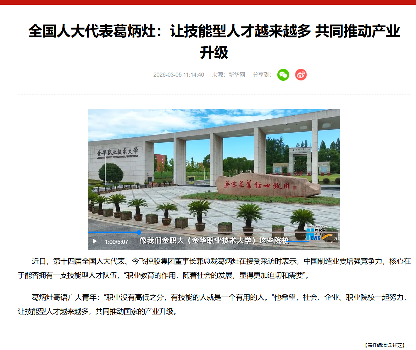 新华网:全国人大代表葛炳灶:让技能型人才越来越多 共同推动产业升级