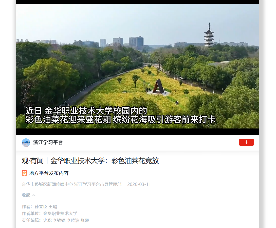 学习强国 浙江学习平台:观·有闻丨金华职业技术大学:彩色油菜花竞放
