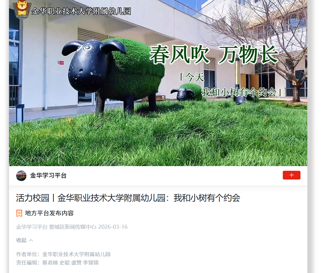 学习强国 金华学习平台:活力校园丨金华职业技术大学附属幼儿园:我和小树有个约会
