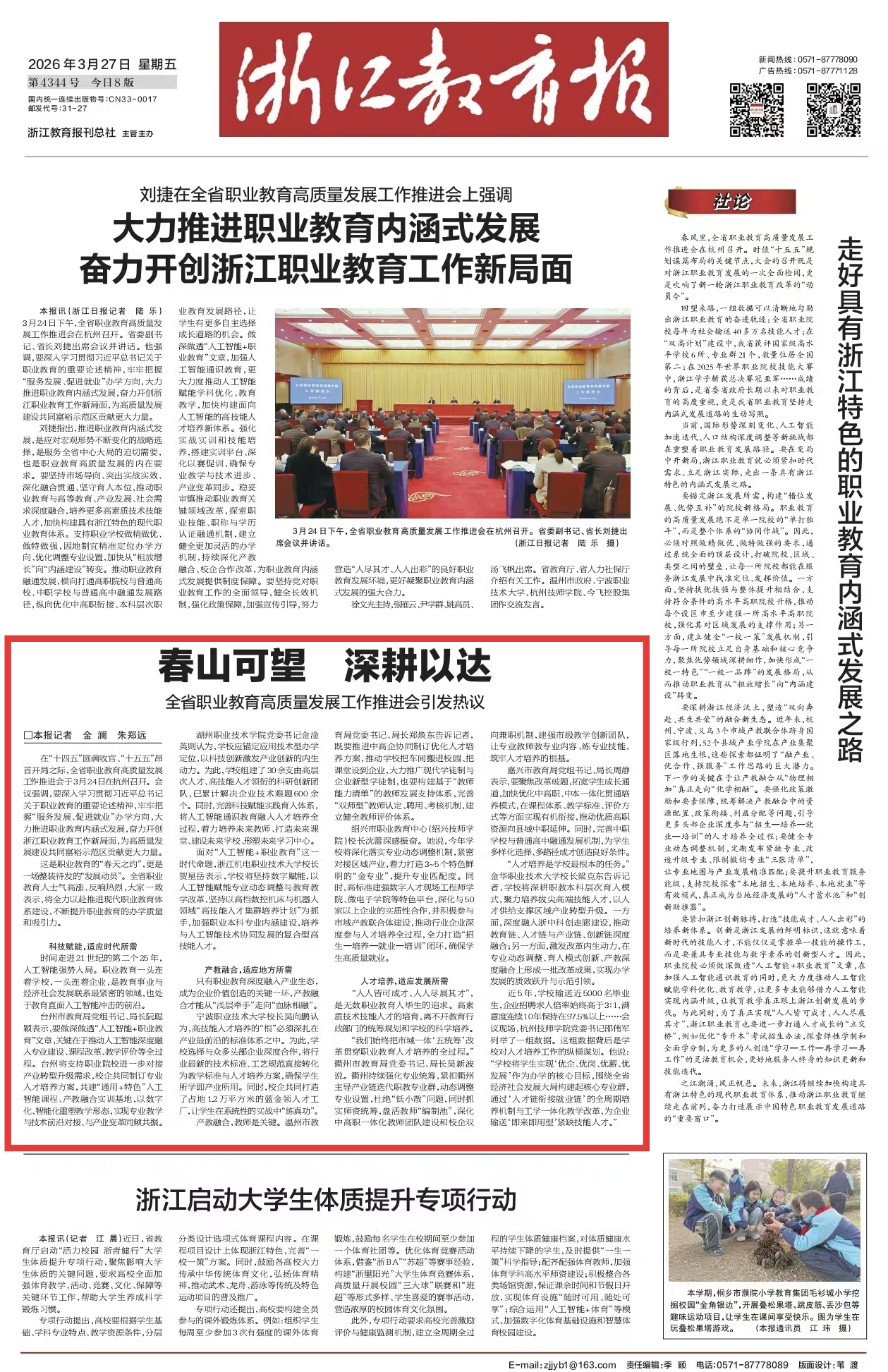浙江教育报:春山可望 深耕以达 全省职业教育高质量发展工作推进会引发热议