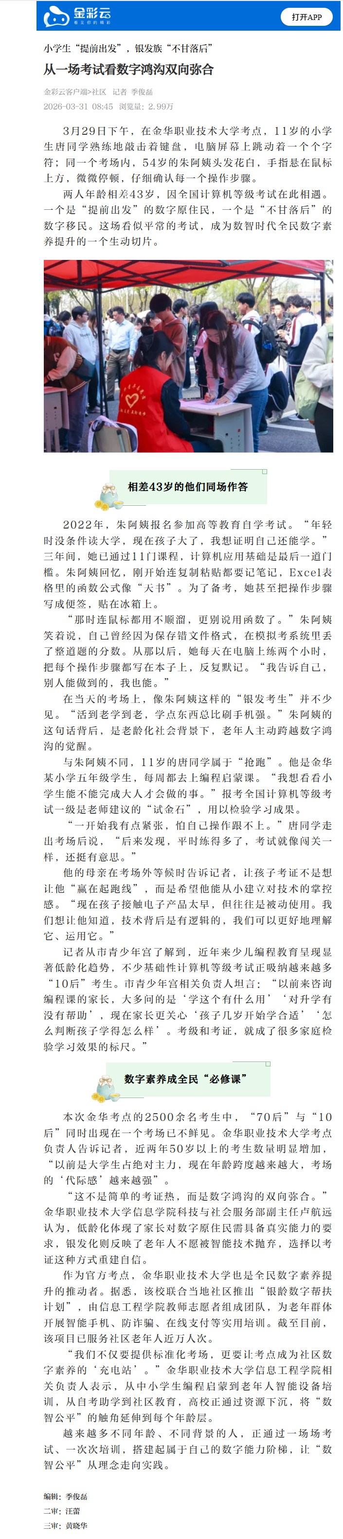 金彩云客户端:小学生“提前出发”,银发族“不甘落后” 从一场考试看数字鸿沟双向弥合