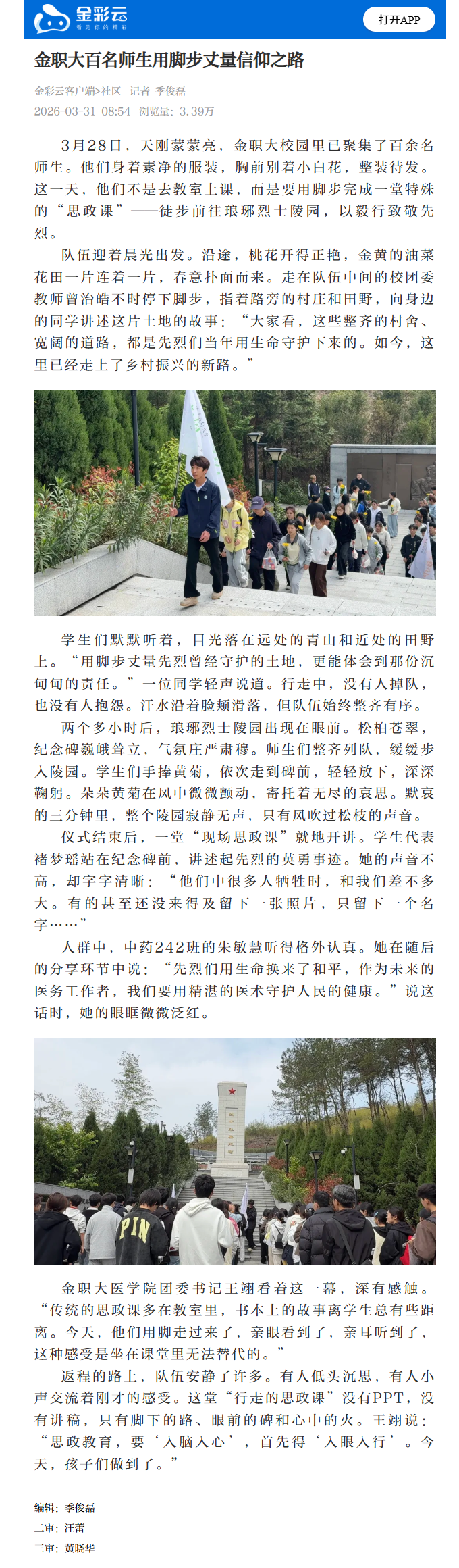 金彩云客户端:金职大百名师生用脚步丈量信仰之路
