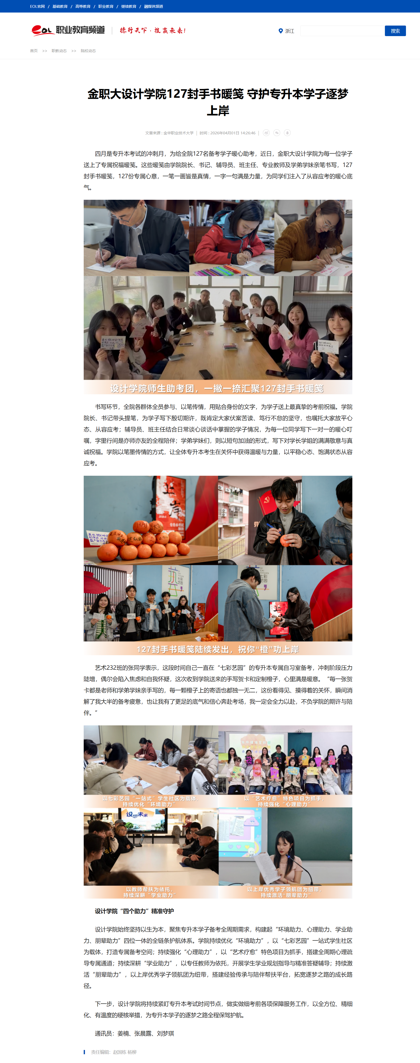 中国教育在线:金职大设计学院127封手书暖笺 守护专升本学子逐梦上岸