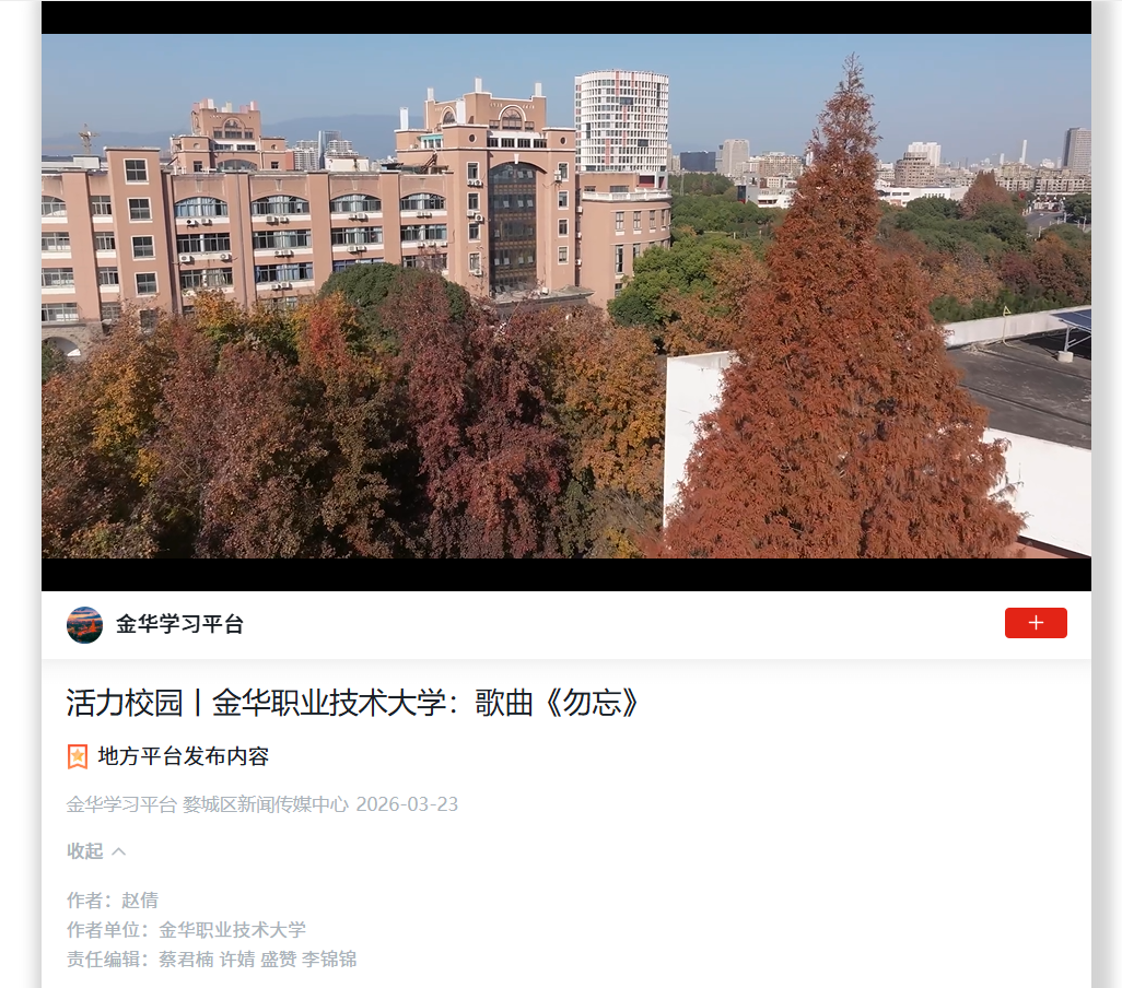 学习强国 金华学习平台:活力校园丨金华职业技术大学:歌曲《勿忘》