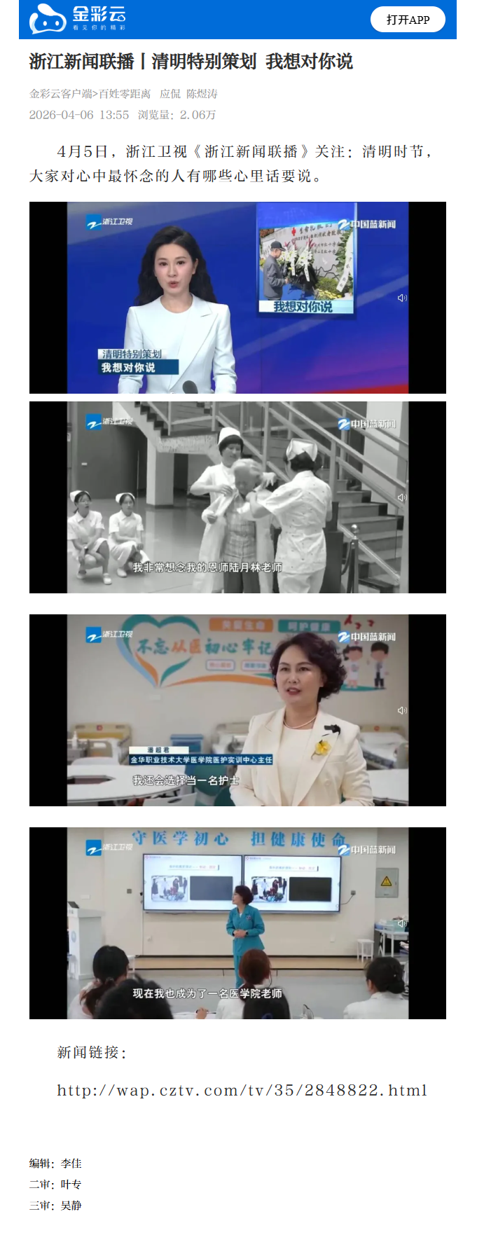 金彩云客户端:浙江新闻联播丨清明特别策划 我想对你说